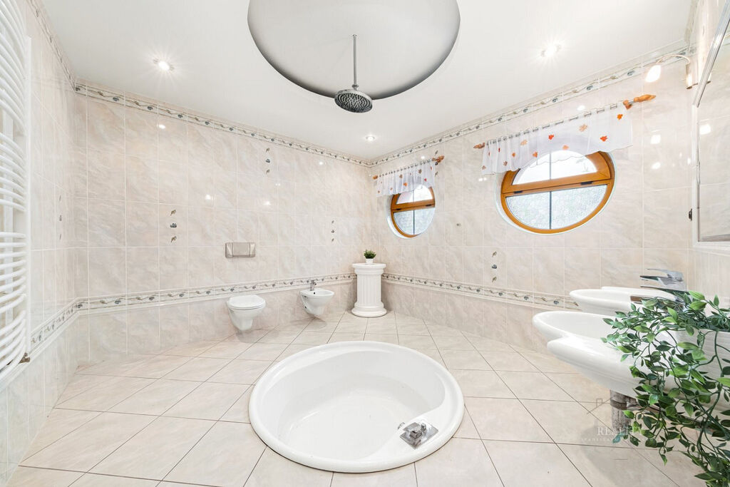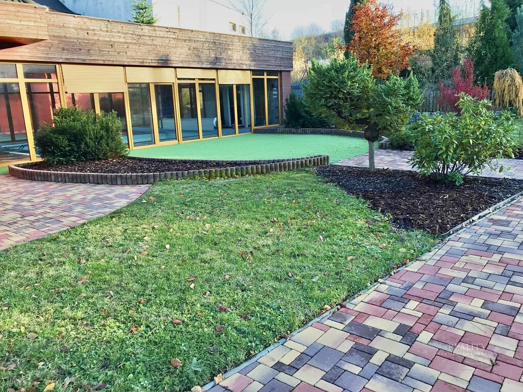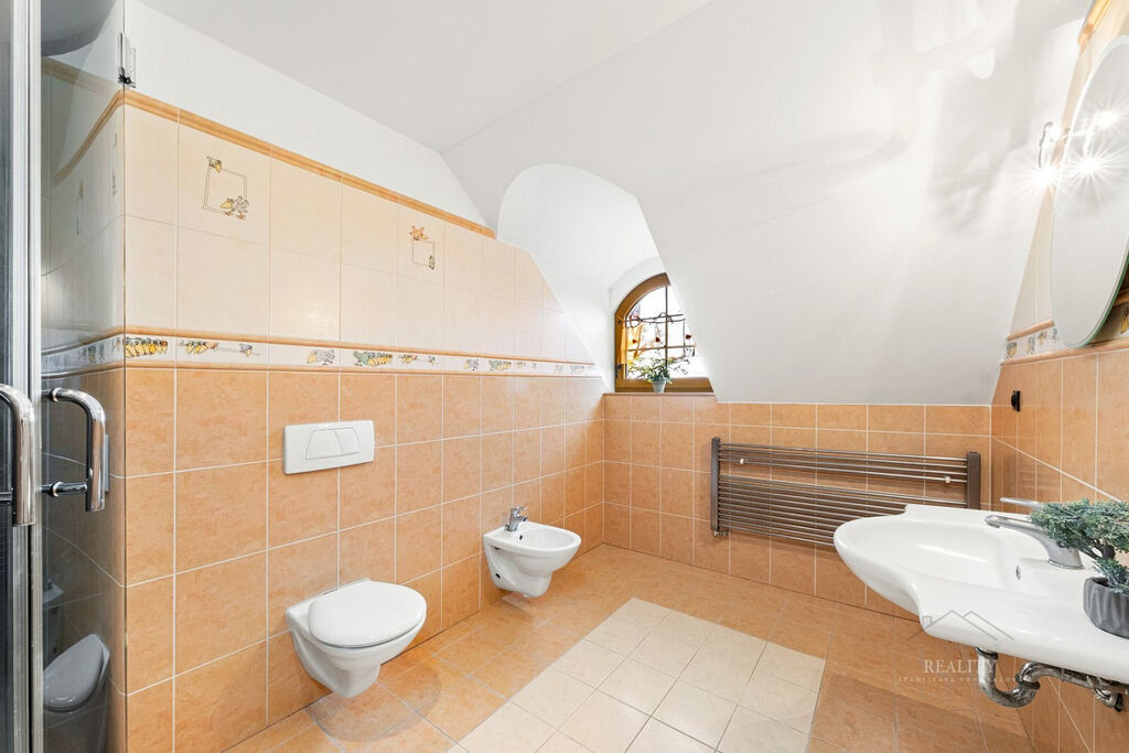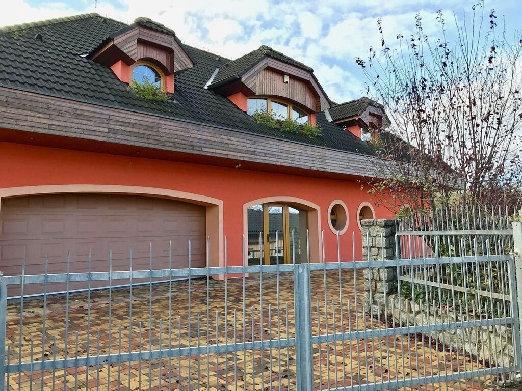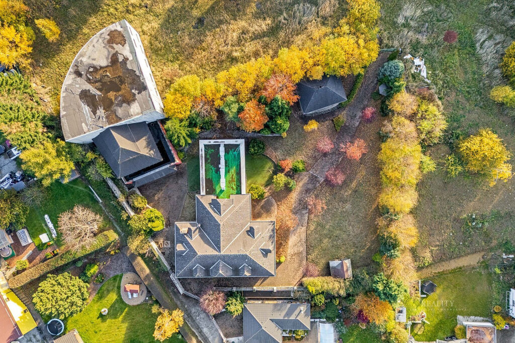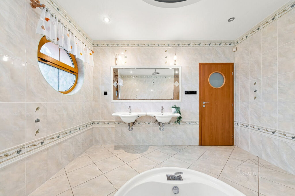Wellness plocha není započtena do uvedené užitné plochy domu – uváděna zvlášť, přímý vstup z domu do wellness zóny a na nádherně členitou zahradu o 1 738 m² s okrasnými dřevinami, trávníky a odpočinkovými zákoutími, altán s velkým zděným grilem a posezením – ideální pro rodinné a společenské akce, elektrická brána, krytá garáž u vjezdu, dlážděné přístupové cesty po celém pozemku, francouzská okna a obloukové architektonické prvky zajišťující propojení s přírodou, vlastní studna (vhodná pro provoz a závlahu zahrady), technická místnost s technologií k bazénu, plynovým kotlem i kotlem na tuhá paliva