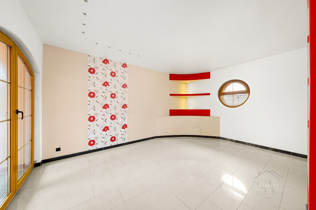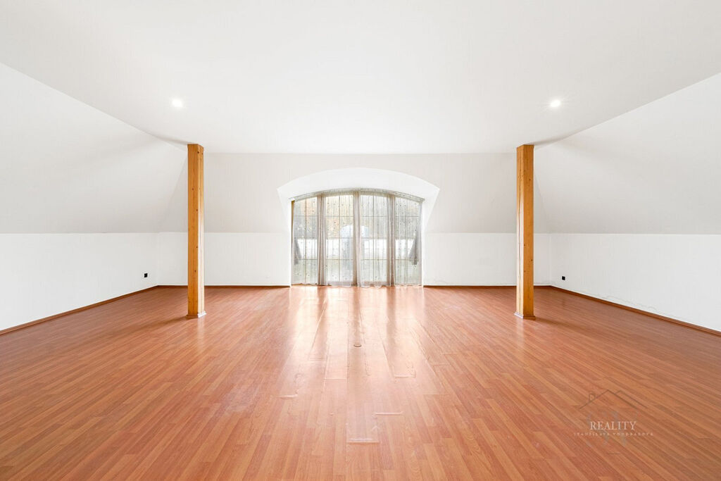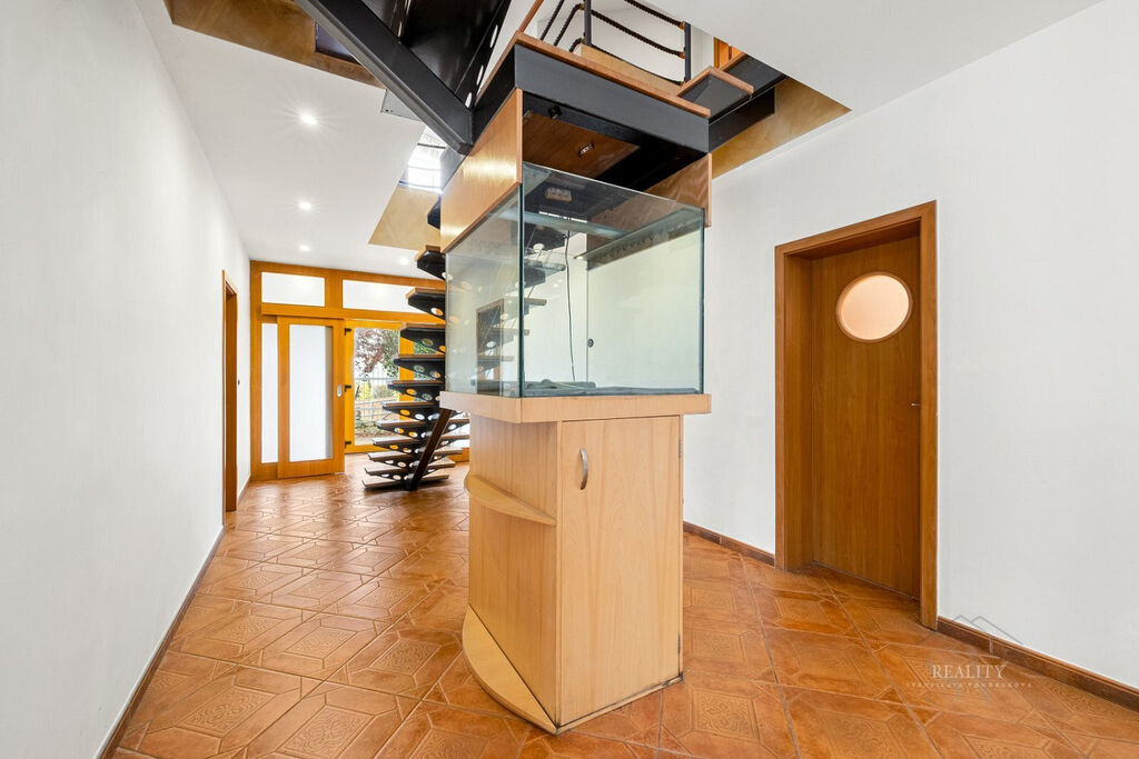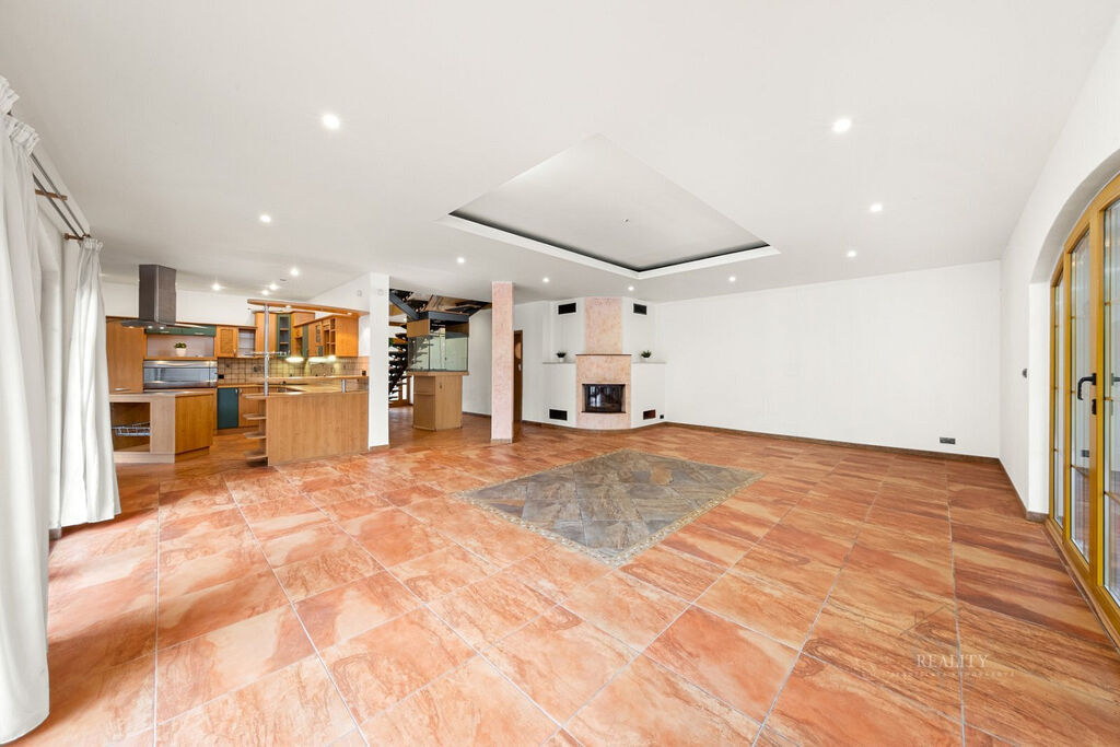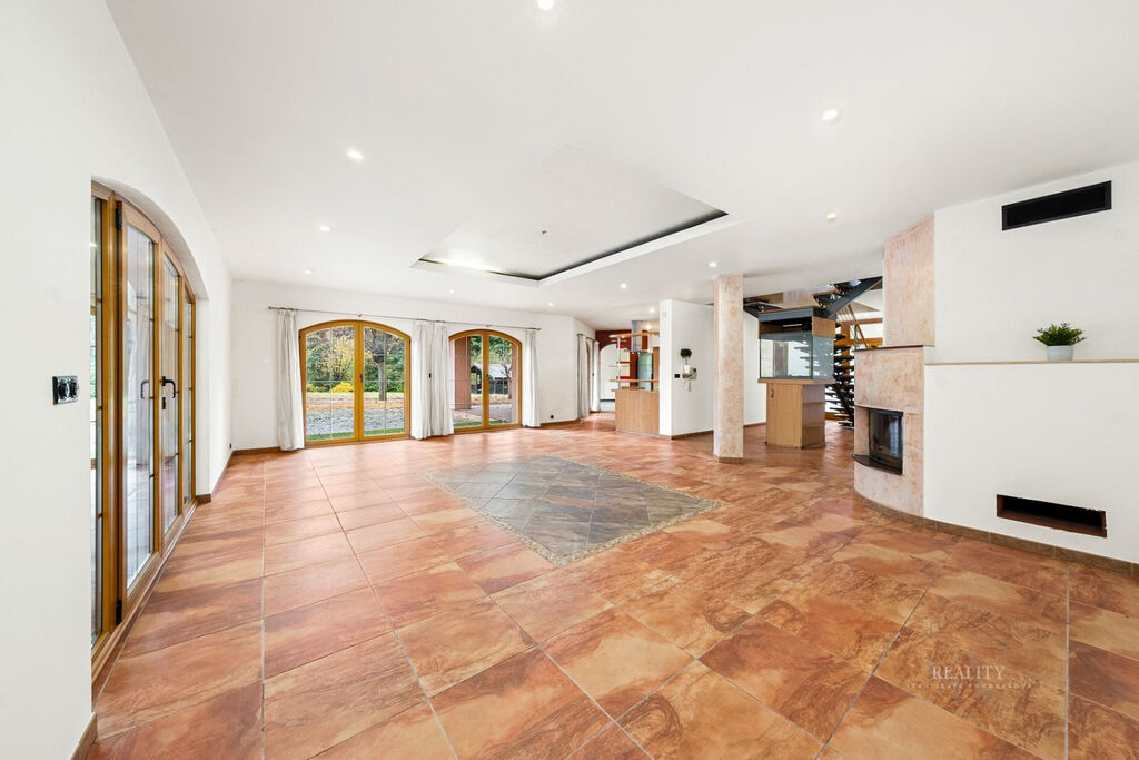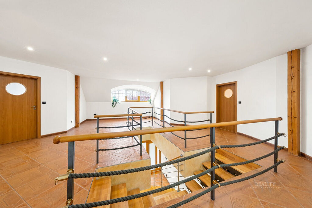 Dům je delší dobu neobydlený a vyžaduje rekonstrukci interiéru i technologií. Díky velkorysé dispozici, rozlehlému pozemku a privátní wellness hale nabízí mimořádný potenciál pro luxusní rodinné sídlo, rekreační vilu nebo reprezentativní rezidenci nedaleko Prahy.