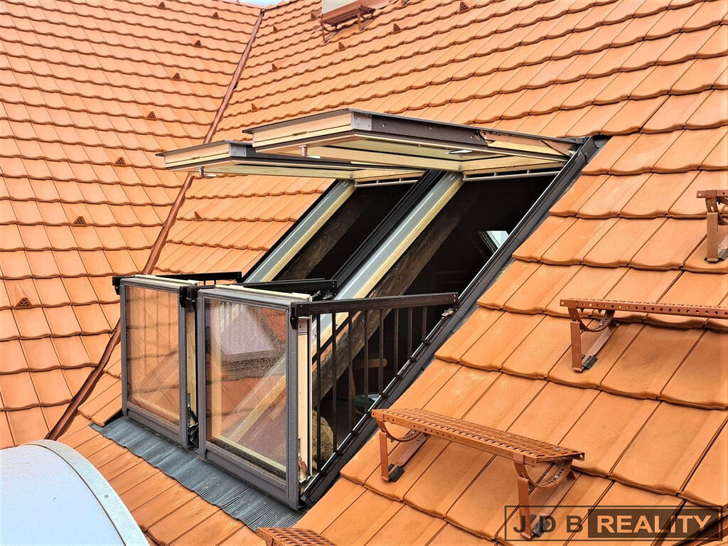 Nabízíme pronájem velice pěkného, celkově zrekonstruovaného a částečně zařízeného bytu o celkové velikosti 127m², který se nachází nedaleko Mírového náměstí v Litoměřicích. Klimatizovaný byt o dispozici 3+kk je situován v podkroví třípodlažního domu v centru města. Do bytu se dostanete po schodišti, dále do vstupní chodby a následně do velkého obývacího pokoje s plně vybaveným kuchyňským koutem, pracovním ostrůvkem a jídelním koutem. Vedle kuchyňské linky je samostatná spíž. Z centrálního obývacího pokoje kde je umístěn krb je vstup do dalších dvou pokojů a do koupelny. Koupelna je vybavena vanou a sprchovým koutem, umyvadlem, pračkou a sušičkou a je zde vstup na samostatné wc. V koupelně je dále umístěn nový plynový kotel, kterým je zajištěno vytápění a ohřev vody, v celém bytě jsou nová okna a kvalitní vinylové podlahy. K bytu dále náleží sklad, velká půda a sklep. Zajímavostí bytu jsou dvě velká výklopná okna s vyhlídkou. Parkování je možno přímo před domem.