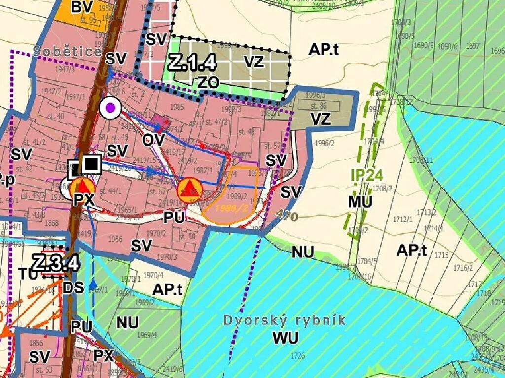 Předmětem dražby je pozemek o výměře 1 533 m2 v malé vesnici Sobětice, která je částí obce