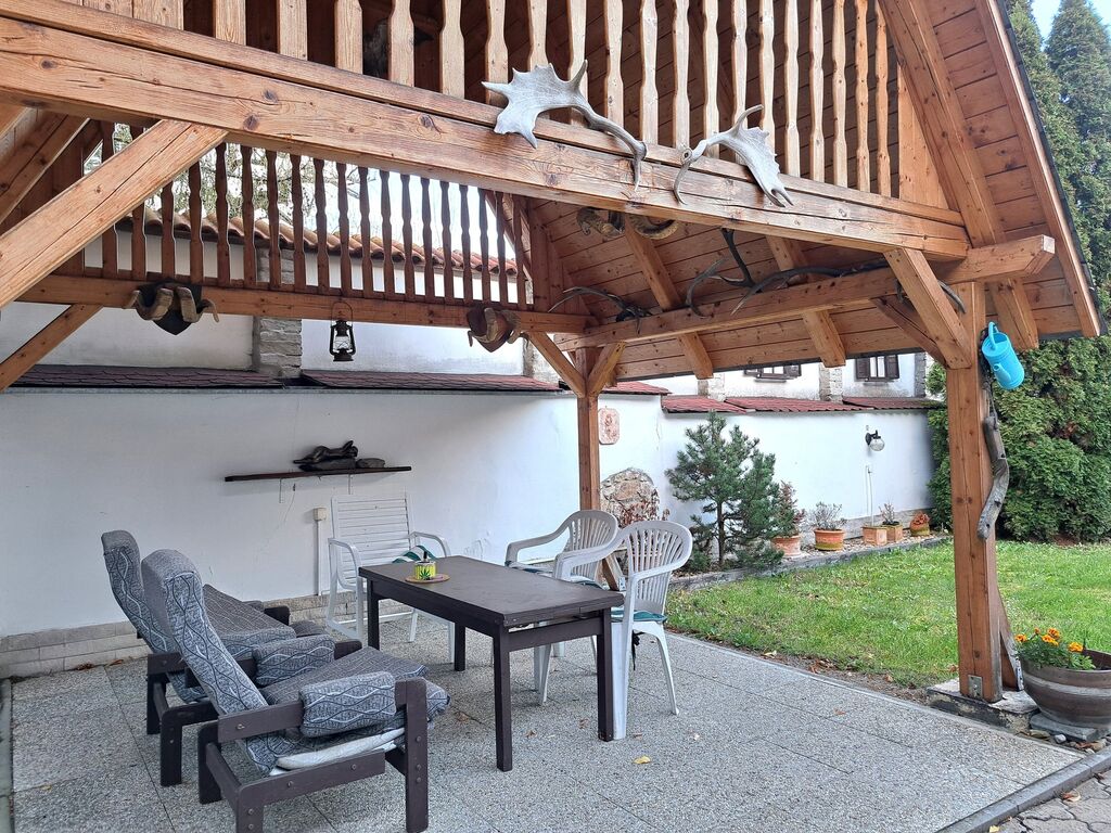 Exkluzivní nabídka velkého rodinného domu v žádané obci Račice u Berounky. Vhodné pro větší rodinu, nebo jako penzion. Obytný dům má v přízemí halu, kuchyni, dva pokoje (jeden s vl. vstupem), 2x WC a velkou koupelnu. V patře jsou dvě ložnice, každá má samostatnou koupelnu s WC. Ve sklepě je kotel na tuhá paliva a elektrokotel, oba funkční. V kuchyni jsou kromě sporáku klasická kamna na dřevo, tedy i vytápějí, + možnost osazení krbu do jednoho z pokojů: 3-průduchový komín. Velká garáž s oknem a umyvadlem, nad tím půda s možností vytvoření dalších místností. Před domem kryté posezení, vedle domu venkovní gril s posezením, velký bazén. Průjezdná stodola je nyní využívána jako sklad a garáž + pračka připojená na studniční vodu. V zahradě je zděný domek 50 m2 + skleník + záhonky, na většině plochy trávník, vzrostlé jehličnany zajišťují soukromí. Račice patří mezi vyhlášené rekreační oblasti. Dům je 150 m od Berounky i od nádraží, odtud časté spoje do Berouna a dále rychlíkem do Prahy. Pozemek je rovinatý, mimo záplavové území. V obci je restaurace, vodácký stánek s občerstvením u řeky, obchod. Obec zajišťuje svozy autobusem pro děti do školy. Možnost prodeje nemovitosti i s vybavením. Cena včetně právního servisu, optimální hypotéku pomohu zajistit.