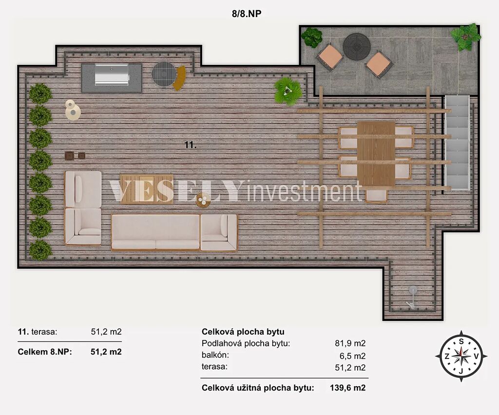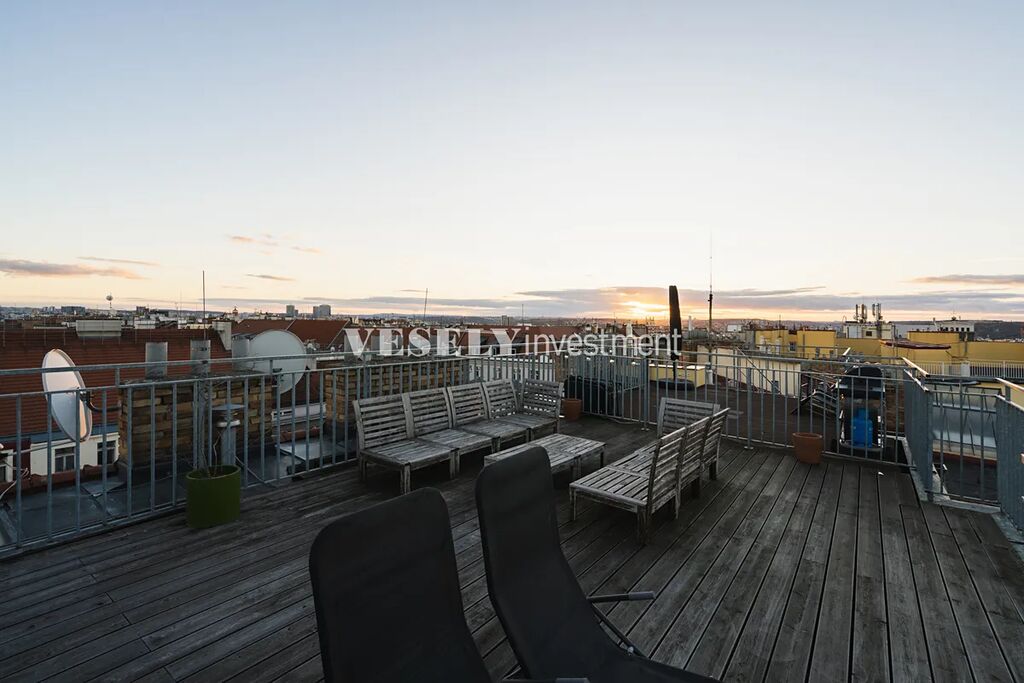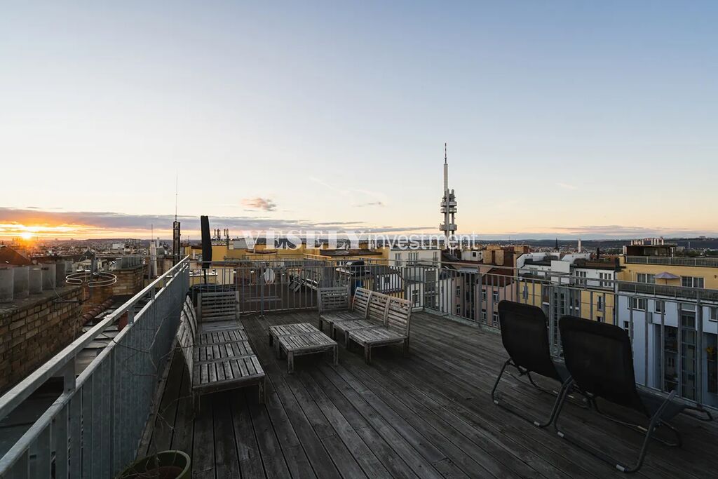 Nabízíme k prodeji unikátní mezonetový byt 4+kk, 139,6 m2 se střešní terasou 51 m2 s krásnými výhledy na celé město, po rekonstrukci, poblíž náměstí Jiřího z Poděbrad. Cihlová bytová nadstavba z roku 2006 v klasickém cihlovém domě s výtahem se nachází v 6.NP, 7.NP. a 8NP.
