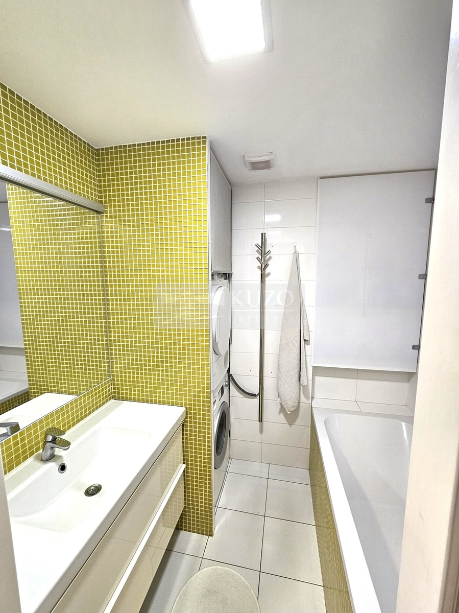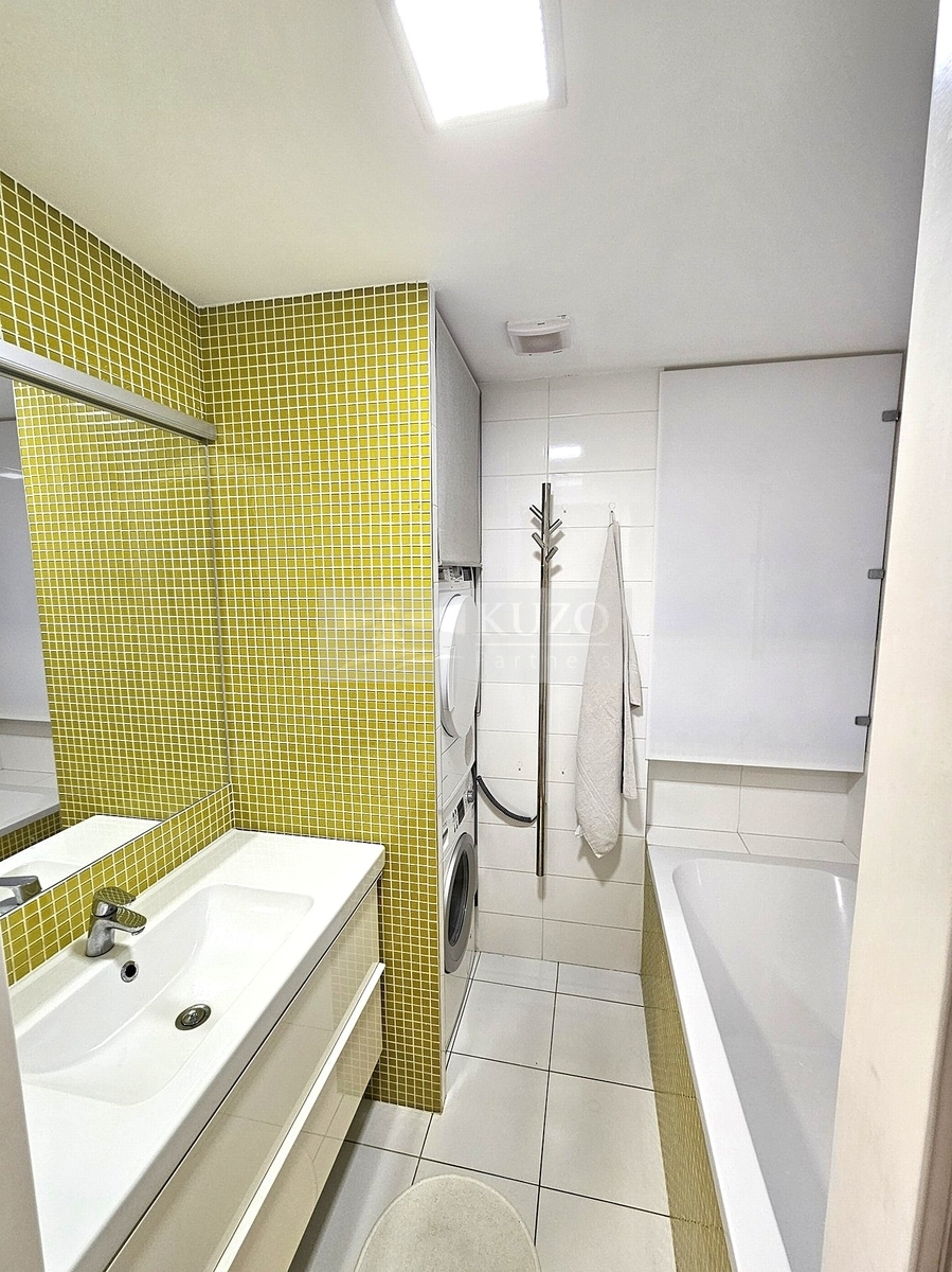 Byt sestává ze vstupní chodby (8,3 m2), prostorného obývacího pokoje s kuchyňským koutem (31,8 m2), 2 neprůchozích pokojů (12,5 m2 a 11,6 m2), koupelny (3,7 m2), WC (1,1 m2), komory (2,4 m2) a lodžie (7 m2). Byt prošel pečlivou a promyšlenou rekonstrukcí, která v sobě spojuje moderní styl, funkčnost i příjemnou domácí atmosféru. Majitelé věnovali pozornost každému detailu. Díky tomu vzniklo mnoho úložných řešení. Z části obývacího pokoje navíc vznikla elegantní vestavěná místnost, kterou lze využít jako pracovnu nebo ložnici. Na základě tohoto chytrého řešení se z bytu stalo pomyslné 4+kk - se dvěma samostatnými dětskými pokoji a útulnou ložnicí/pracovnou pro rodiče. Byt tak díky tomu nabízí ideální kombinaci otevřeného prostoru pro společné chvíle i dostatek soukromí pro každého člena rodiny. Je to místo, které působí velmi útulně a zároveň moderně. Velkou devízou bytu je také možnost využívat skladový prostor 9,9 m2 s denním světlem a otevíracím oknem v posledním patře domu, který mají majitelé pronajatý od SVJ na dobu neurčitou.