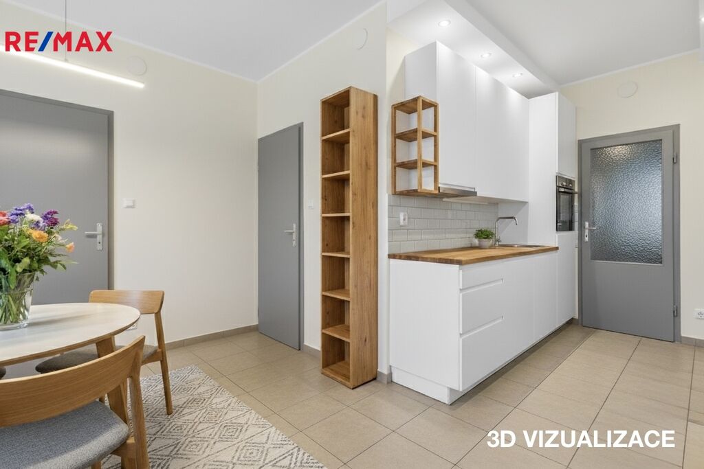 Byt o velikosti 3+1 (81,5 m2) se nachází v 1. nadzemním podlaží zrekonstruovaného domu a nabízí příjemnou dispozici s neprůchozími pokoji. Součástí bytu je praktická komora a spíž.