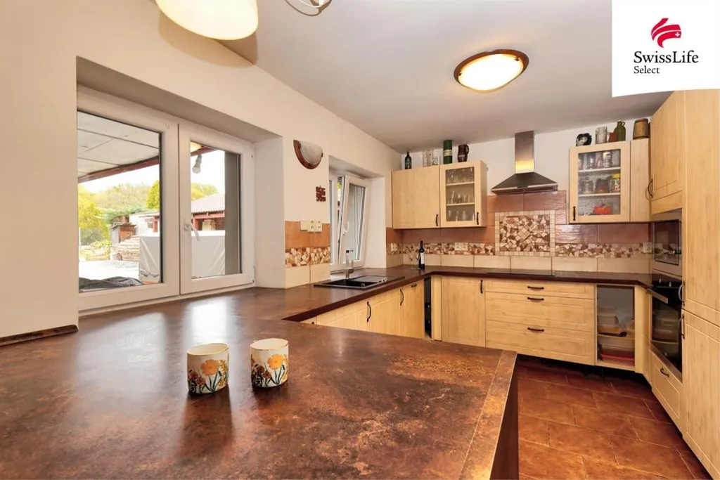 - kuchyně na míru s vestavěnými spotřebiči a útulním jídelním koutem