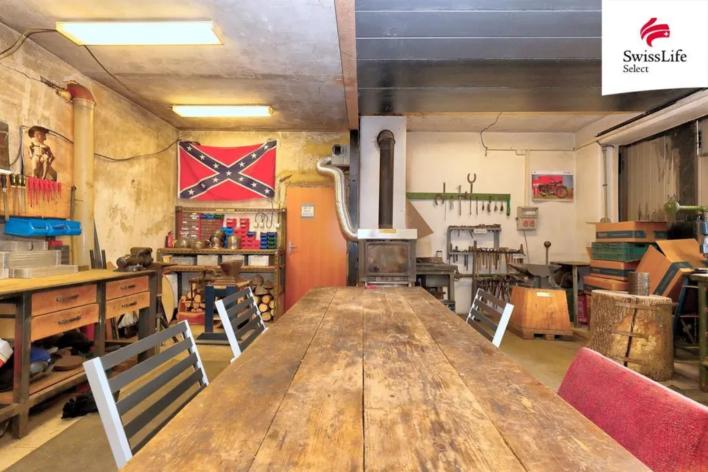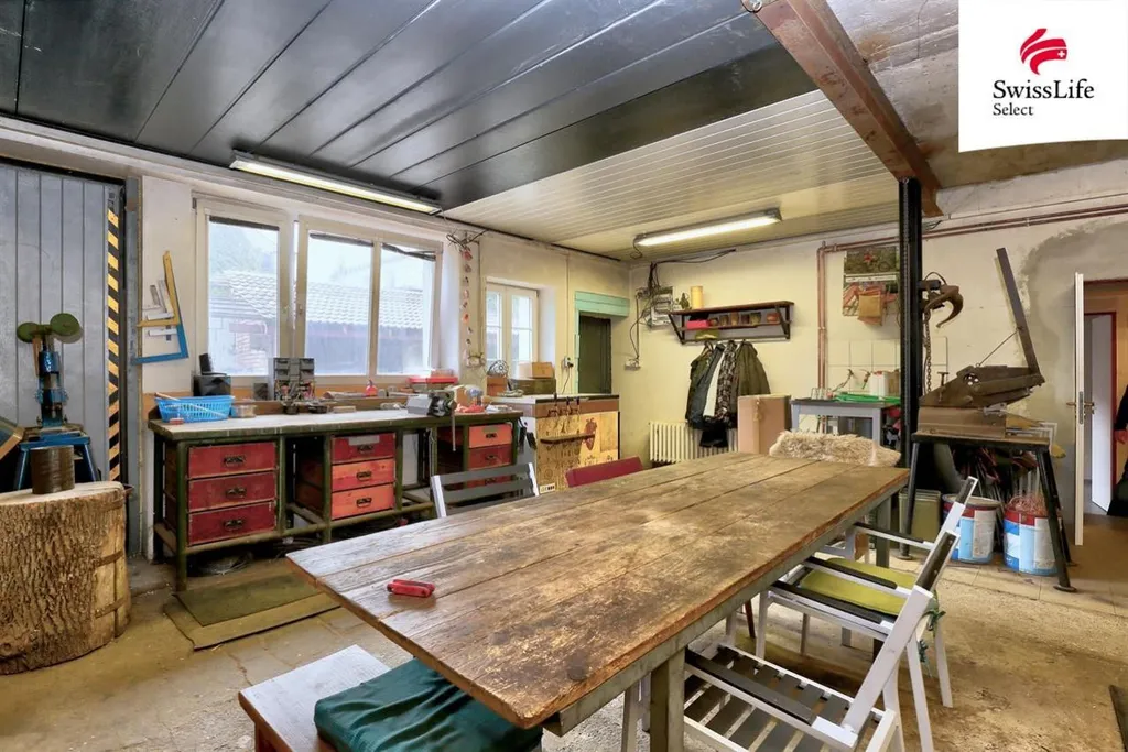 Dvě nadzemní podlaží, částečné podsklepení a velká dílna otevírají téměř neomezené možnosti využití.