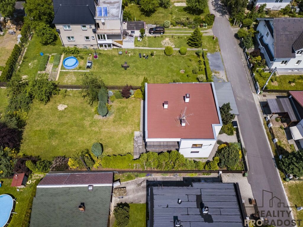 - Další technická místnost na sekačku a zahradní nářadí najdete za garážovým stáním, kterou projdete přímo na zahradu za domem