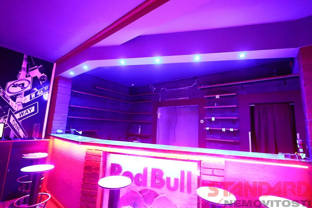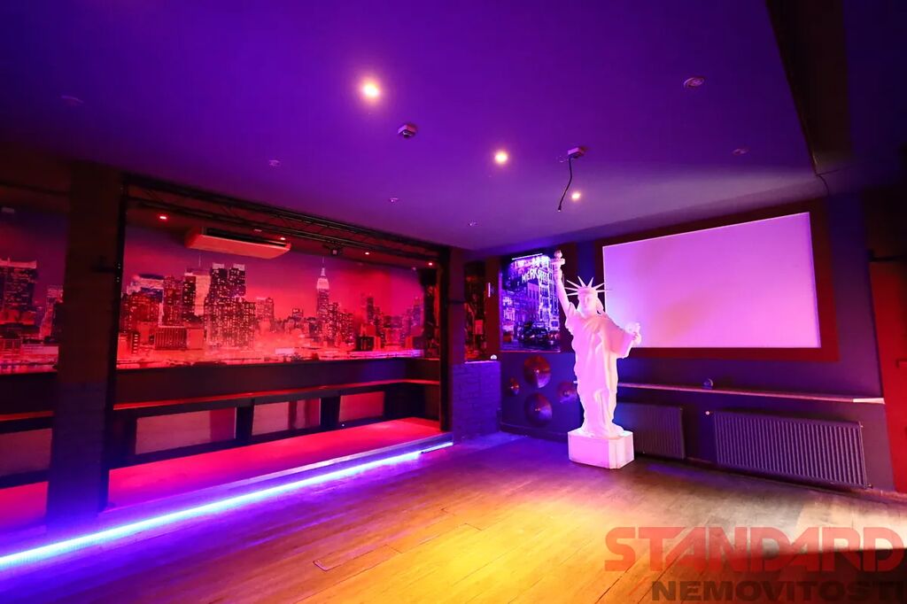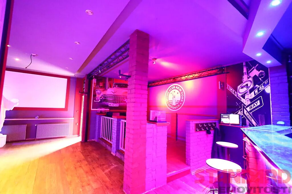 • vstup z ulice po dvou schodech do centrální místnosti s barem a tanečním parketem o ploše 95 m²