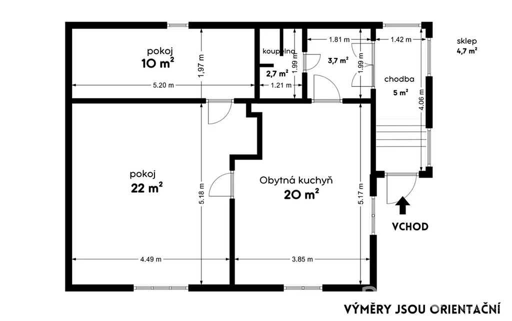 Sklep je přístupný z chodby a má výměru 5 m2