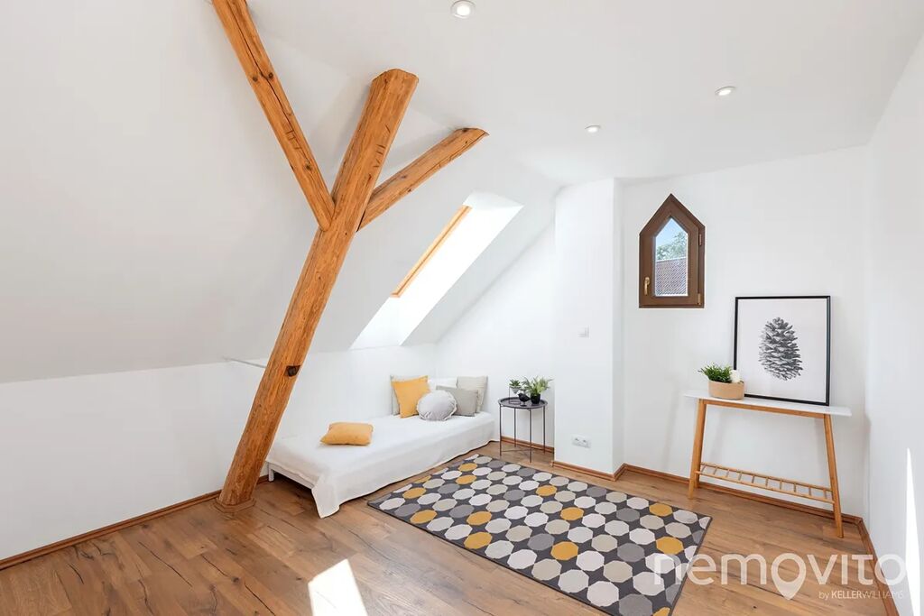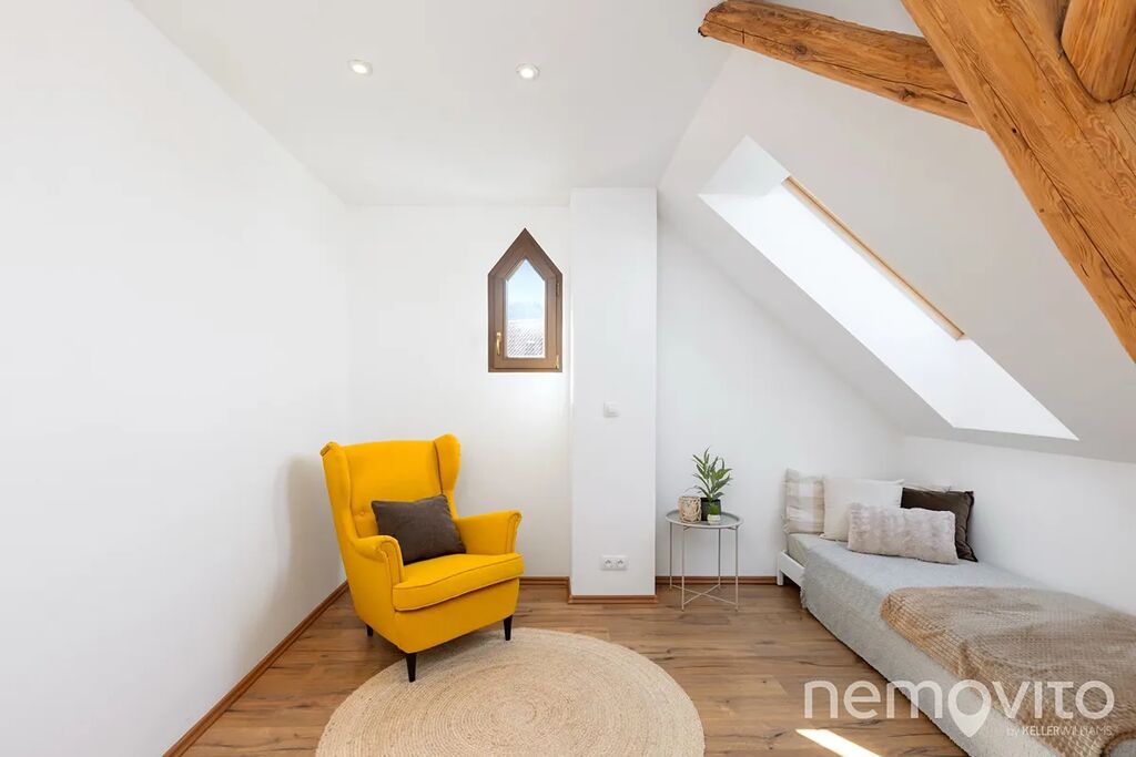 Podlaží jsou propojena masivním dřevěným schodištěm, v bytě je k dispozici podlahové vytápění se samostatným kotlem a okna jsou ve trojskle. Parkování aut je zajištěno na vlastním pozemku se spoluvlastnickým podílem, kde je rovněž malá sdílená zahrádka. Po rekonstrukci je také celý dům, který stejně jako byt nevyžaduje žádné investice.