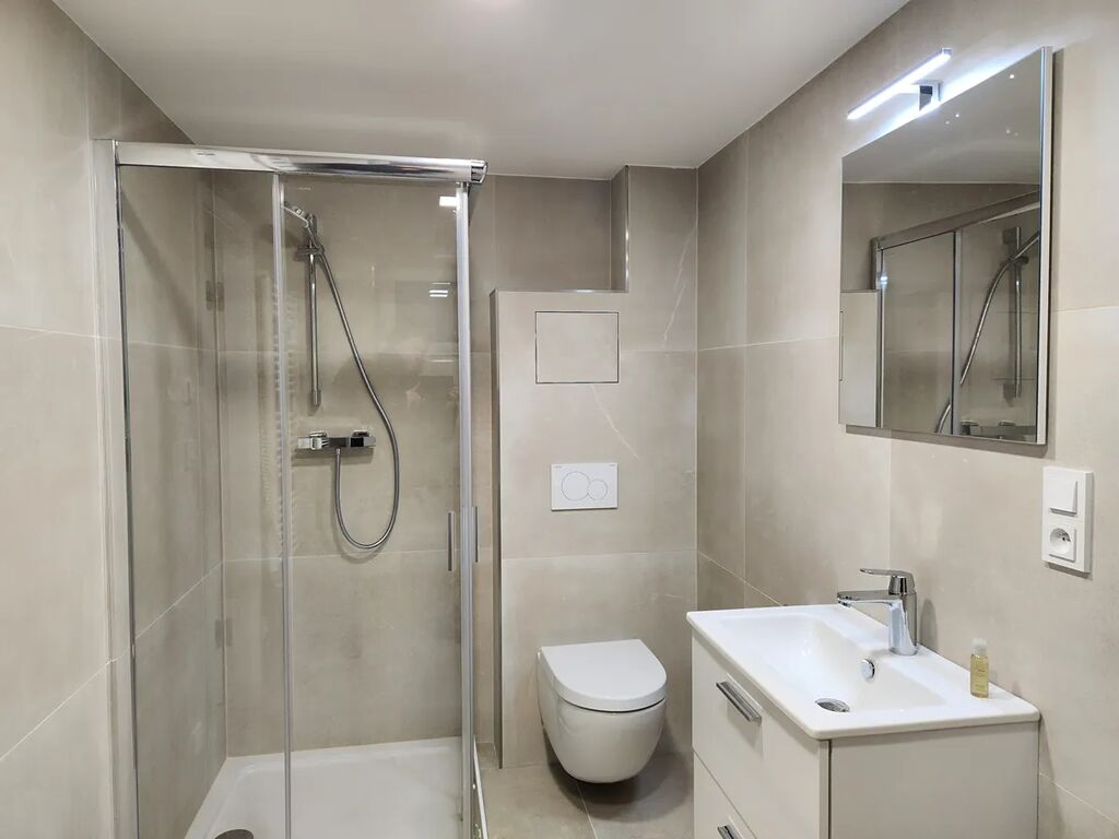 Nabízíme k pronájmu nový byt s parkovacím místem, terasou a zelenou plochou v klidné části města Zlín, Louky nad Dřevnicí, v těsné blízkosti zastávky MHD. Byt má krásný výhled na okolí. Byt je vybavený novou značkovou německou kuchyní s varnou deskou Elektrolux, horkovzdušnou troubou Elektrolux, odsavačem Faber, myčkou Elektrolux a lednicí AEG .Dveře jsou bezfalcové německé firmy Hormann. Podlahy jsou z italské velkoformátová protiskluzové dlažby a béžového kvalitního koberce. V celém bytě je podlahové topení, které lze ovládat po zónách a tím šetřit energie, je zde také klimatizační jednotka, kterou lze v přechodových měsících přitápět, což významně uspoří na energiích a samozřejmě v létě chladit. Světla jsou kompletně ledková s minimální spotřebou elektřiny. Dům je postaven z 375mm až 500mm izolačního Porfixu, zateplený 160mm polystyrenem, včetně podlah i podkroví 300mm až 500mm izolace a jsou v něm tři samostatné bytové jednotky s vlastním vstupem. Okna jsou kvalitní plastová V-okno německý profil Gerlan 9000 s izolačním trojsklem s galvanickým pokovením. Koupelna je vybavena sprchovým koutem Ravak s vaničkou z litého mramoru, umyvadlem Vitra se spodní skříňkou, Wc je tlačítkové - Geberit , baterie jsou Grohe, jsou zde připraveny vývody na pračku i sušičku. Byt je Loftového typu a nachází se v přízemní části zděného rodinného domu. Ideální pro dva až tři, max. čtyři nájemníky. Zastávka MHD je ve vzdálenosti 70m. Požadujeme zájemce bez domácích mazlíčků, občany České republiky. Plně vratná kauce je 30000,- Kč. Provize za zprostředkování se neplatí. Nájemné činí 13.900,-Kč plus záloha na vodu (300,-/ měsíčně/osoba) a elektřinu ve výši cca 1500,-. Venkovní terasa má každá své venkovní světlo a venkovní zásuvku. Zahradu za domem budou mít nájemníci možnost využívat ke grilování a odpočinku. Majitel upřednostňuje dlouhodobý pronájem. Byt je nekuřácký.