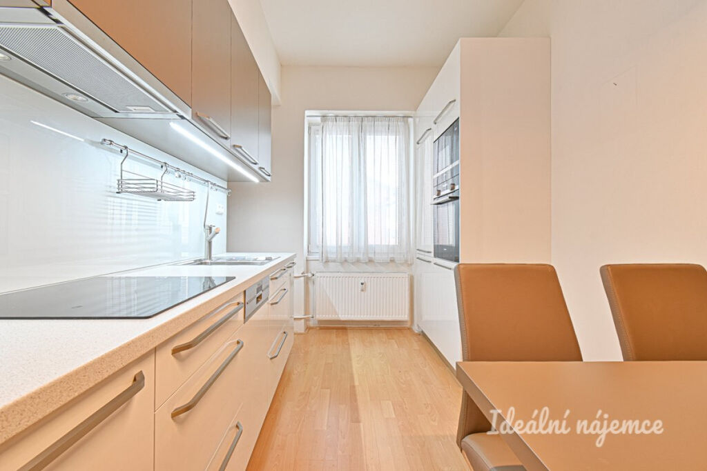 Byt se nabízí plně vybavený. Kuchyně disponuje lednicí, myčkou, elektrickou troubou, varnou deskou, mikrovlnnou troubou, digestoří, stolem a čtyřmi židlemi. V druhém pokoji najdeme pracovní stůl s židlí, šatní skříň, postel, televize a klimatizace. V koupelně je sprchový kout, umyvadlo, pračka se sušičkou a toaleta.
