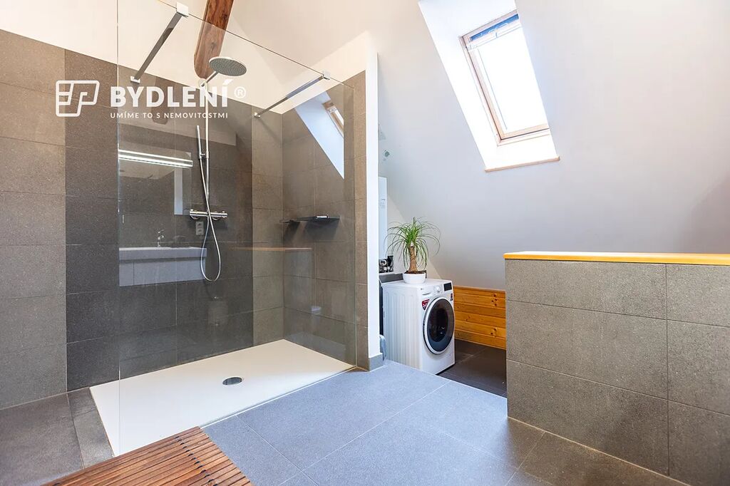 Interiér vás na první pohled zaujme otevřeným prostorem, vysokými stropy a dřevěnými prvky, které dodávají bytu jedinečný charakter. Dominantou obývací části je stylový krb, který vytváří příjemnou atmosféru a pocit domova i v chladnějších dnech.