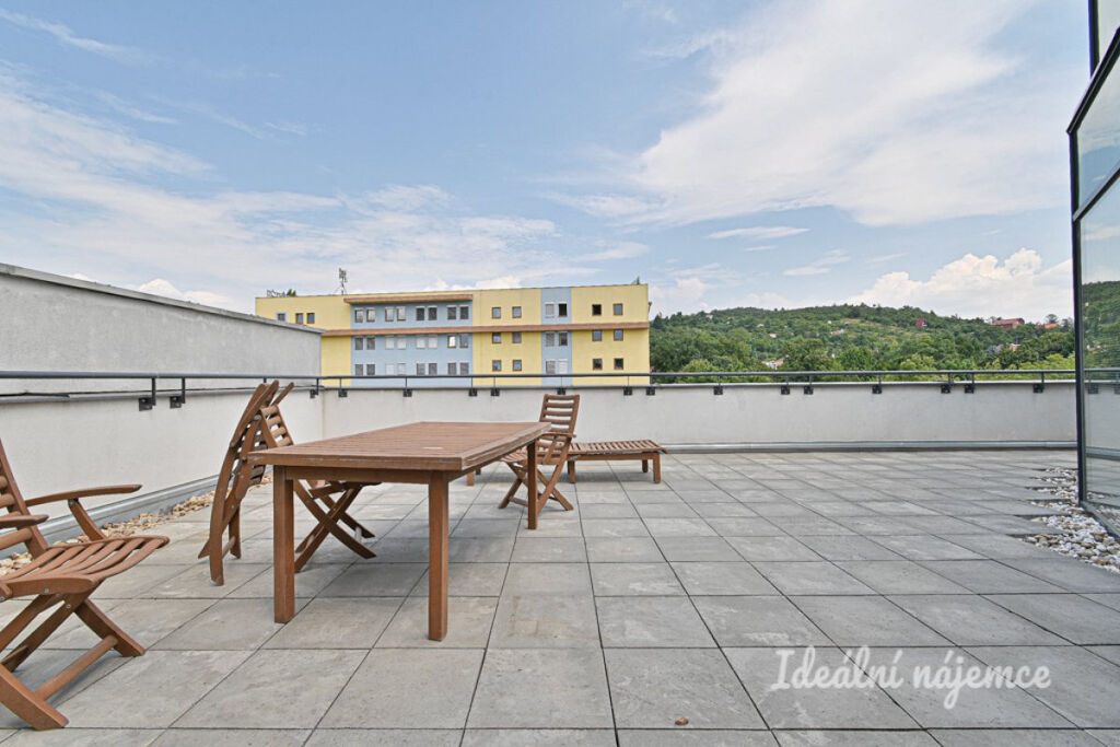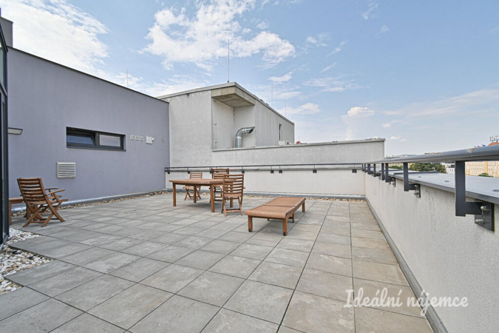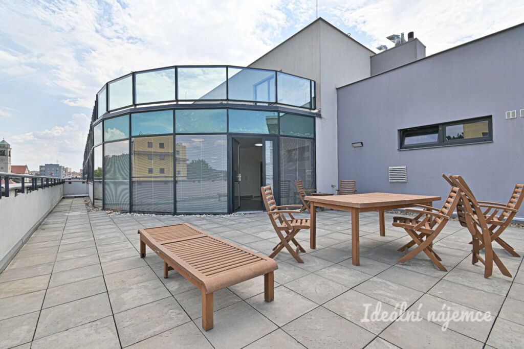 K prodeji nabízíme ateliér o dispozici 3+kk o celkové rozloze 144,8 m², který se nachází v 5. patře cihlového domu s výtahem. Samotná podlahová plocha činí 77,8 m², k bytu dále náleží sklep o velikosti 14 m², prostorná terasa 62 m² a parkovací stání v garáži, které je již zahrnuto v ceně. Byt se prodává vybavený dle fotografií.