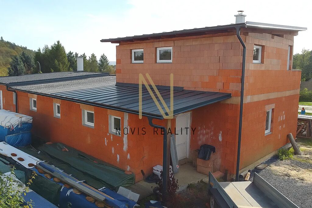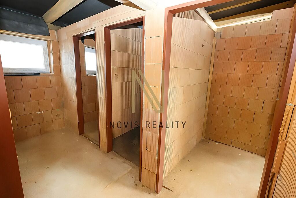 Dům je částečně dokončený a rozdělený na dvě části: