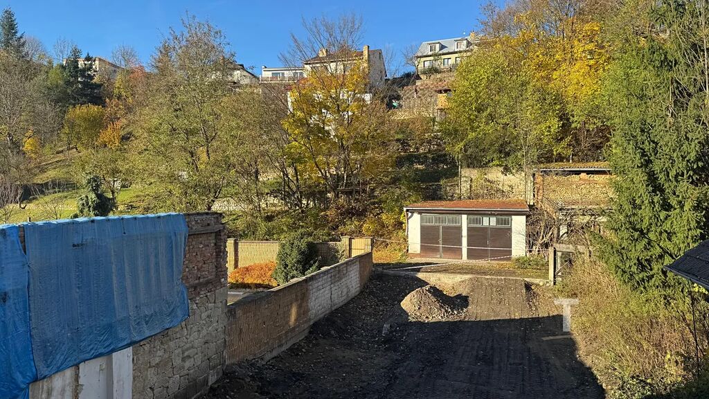 Pozemek je rovinatý a je přístupný ze zadní části, kde je možné parkování.