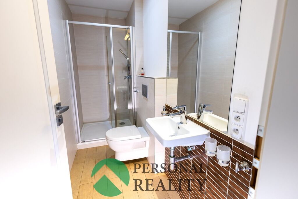 Garáž je dimenzovaná pro tři vozy, má zásuvky 230V i 360V, umyvadlo, vodovodní a kanalizační přípojku pro druhou pračku, okno, betonovou podlahu vyspádovanou po celé ploše, s odtokem do kanalizačního řádu, alarm i vstup na zahradu. Široká vrata do garáže i pojezdová brána na pozemek jsou na dálkové ovládání. Parkování je možné I na ulici před domem.