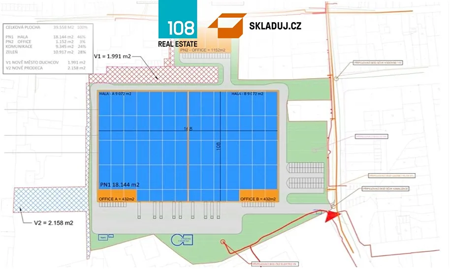 Je vydáno platné územní rozhodnutí pro výstavbu průmyslové haly. Jedná se o jednu budovu se zastavěnou plochou 18 144 m2.