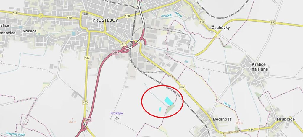 Výměra prodávaných pozemků je 36.814m2. Pozemky se nachází nedaleko za letištěm v Prostějově.