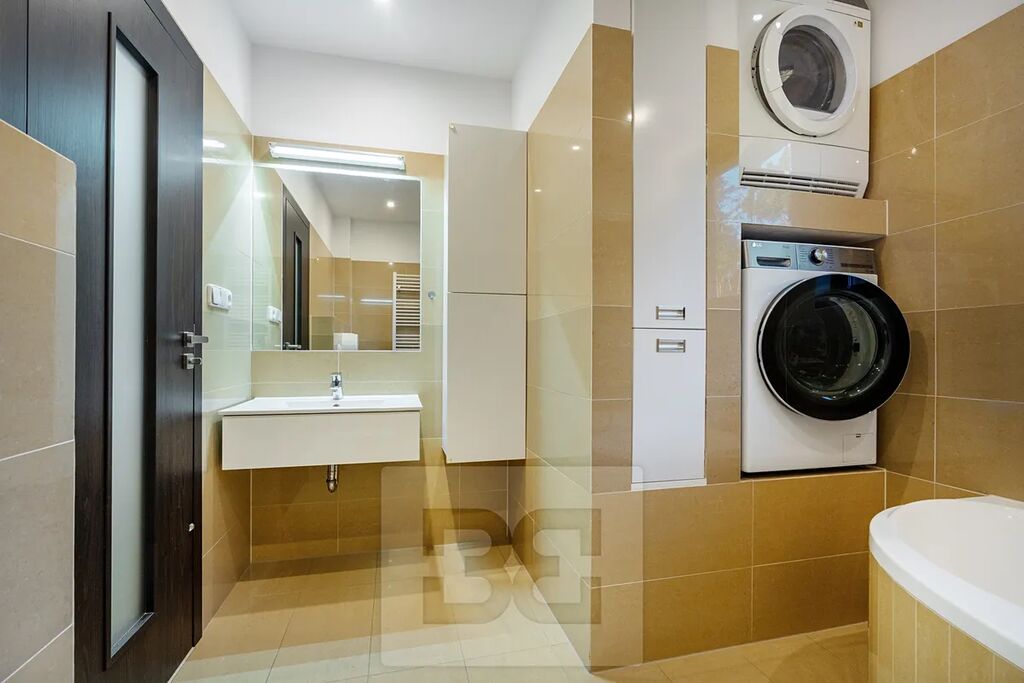 První patro má dispozici dispozici 3kk o celkové výměře 102m² a dominuje mu terasa o celkové velikosti 22m² a francouzským oknem po celé délce a šířce stěny, díky kterému si užijete opravdu překrásný výhled i z kuchyně, jídelny či obývacího pokoje. Ve středu kuchyně je ostrůvek s barovými židlemi a sklokeramickou deskou značky baumatic, kde za zády je prakticky umístěna vestavěná trouba stejné značky. Dále v prvním patře najdete ložnici s vlastní koupelnou se sprchovým koutem a toaletou a soukromou šatnou, hlavní koupelnu s vanou a druhým pokojem, ke kterému také patří vlastní šatna. Podél celé chodny jsou vestavěné skříně, které poskytují dostatek úložného prostoru.