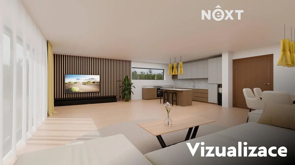V atraktivní lokalitě Srubec, v klidné ulici Smrková, právě roste před očima krajní dvoupodlažní řadový dům o dispozici 5kk a celkové užitné ploše 121 m². Dům je součástí dvojdomku, který nabízí 2 bytové jednotky postavené jako samostatné krajní řadové domy s vlastním vstupem, zahradou i dvěma parkovacími stáními. Rodinný dům č. 1 je již prodaný a právě máte příležitost koupit dům č.2, který nabízí mimořádně komfortní a nadstandardní bydlení. Dům má smysluplně řešený půdorys. V přízemí Vás přivítá prostorné zádveří (5,43 m²), na které navazuje chodba (5,14 m²), pracovna nebo ložnice chcete-li (9,69 m²), koupelna se sprchovým koutem a toaletou (4,69 m²) a technická místnost/sklad (2,10 m²). Dominantou přízemí je nadstandardně prostorný obývací pokoj s kuchyní o celkové užitné ploše 34,84 m² se vstupem na terasu (13,8 m²) a zahradu (174,2 m²). Do prvního patra (2.NP) vede pohodlné schodiště (6 m²). V patře se nachází klidová zóna o 3 pokojích. Ložnice (17,25 m²) s praktickou šatnou, další pokoj (14,53 m²) se šatnou a třetí pokoj (15,6 m²). Dále se zde nachází koupelna s vanou a toaletou (7,24 m²), vše spojeno chodbou (5,04 m²). Každý metr čtvereční zde má své opodstatnění. Dům je navržen tak, aby odpovídal potřebám moderní rodiny a nabízel jak prostor pro společný život, tak i klid a soukromí. Na stavbu jsou použity kvalitní materiály s důrazem na design a dlouhou životnost. V ceně domu jsou zahrnuty interiérové dveře a zárubně, dlažby, sanita v koupelnách značky Hans Gröhe, podlahy Alpha Vinyl a kastlíky včetně žaluzií. Do ceny domu je dále zahrnuta terasa za domem, nezámrzný venkovní kohout na vodu, oplocení a zídka mezi domy. Kuchyňskou linku, osvětlení, nábytek, případně pergolu, apod. si řešíte na vlastní náklady. Součástí inzerátu jsou i vizualizace, které vám pomohou s představou, jak by mohl Váš nový domov vypadat, můžete tak čerpat inspiraci pro uspořádání a vybavení interiéru. Provoz domu bude nízkoenergetický, vytápění je řešeno kondenzačním plynovým kotlem včetně ohřevu vody. V celém domě bude kompletně podlahové vytápění. Energetický štítek (PENB) třídy C. Dům je napojený na kanalizaci, elektřinu a veřejný vodovod. Lokalita Srubec patří mezi nejvyhledávanější místa pro rodinné bydlení v blízkosti Českých Budějovic. V pěší vzdálenosti najdete školu, školku, dětské hřiště, obchod, restauraci i lékaře. Výborné spojení s městem zajišťuje městská hromadná doprava – linka č. 13. Srubec nabízí výjimečné zázemí pro rodiny s dětmi i pro ty, kdo hledají klidné místo k životu obklopené přírodou s veškerou občanskou vybaveností. Tento dům je ideální volbou moderního, designového a prakticky řešeného bydlení s příjemnou atmosférou a kvalitou bez kompromisů. Dokončení domu bude v říjnu 2025, to znamená, že stěhovat se můžete brzy. Rádi pomůžeme s výhodným financováním. Domluvte si prohlídku, těšíme se na jednání s Vámi. Pro komunikaci uvádějte evidenční číslo zakázky N114863.