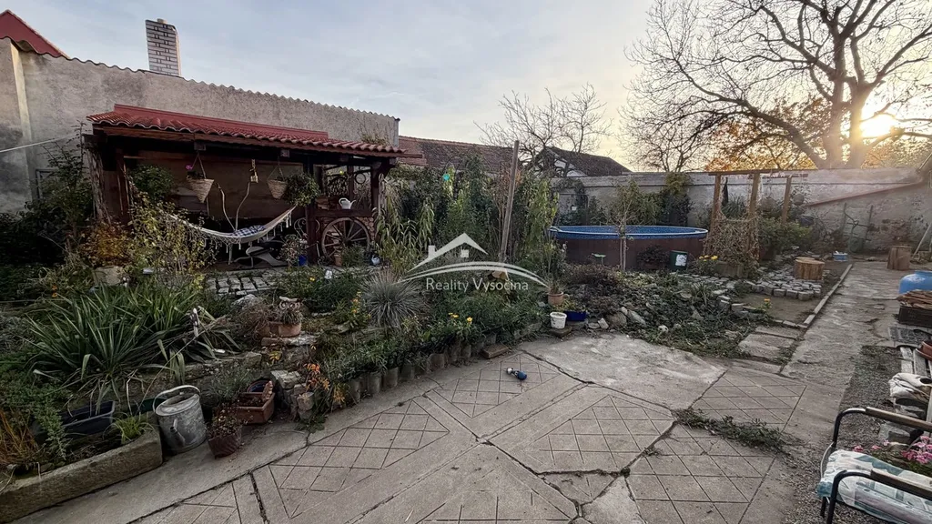 Na jižně orientované zahradě se nachází kruhový bazén o průměru 3,6 m a hloubce 1,15 m a také pěkná zastřešená pergola pro příjemné posezení. Dům prošel rozsáhlou rekonstrukcí – kolem celého domu byly provedeny drenáže, vyměněna střešní krytina za pálenou tašku, kompletně byly zrekonstruovány rozvody elektřiny v mědi (220/380 V) s oddělenými okruhy pro každou bytovou jednotku, dále byly vyměněny rozvody vody a odpadů za plastové a osazena nová plastová okna s izolačním dvojsklem. Vytápění zajišťuje kombinovaný plynový kotel s ohřevem teplé vody a v obývacím pokoji jsou navíc krbová kamna s novou nerezovou vložkou, která poskytují příjemné přitopení v chladnějších dnech.
