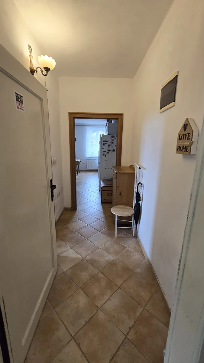 Dispozici tvoří prostorná kuchyně s jídelním koutem, chodba, koupelna s WC a velký světlý obytný pokoj, který díky několika oknům působí vzdušně a příjemně. Součástí vybavení jsou stylová americká kamna na dřevo dodávající interiéru charakter, zároveň mohou sloužit jako další zdroj tepla. Hlavní vytápění i ohřev vody zajišťuje plynový kotel.