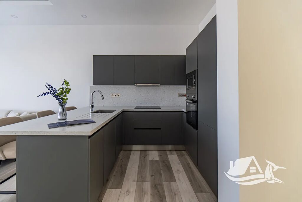 Tento prostorný apartmán 1+1 o rozloze 80 m² se nachází v přízemí a nabízí úchvatný panoramatický výhled na moře, který si zamilujete hned při první ranní kávě.