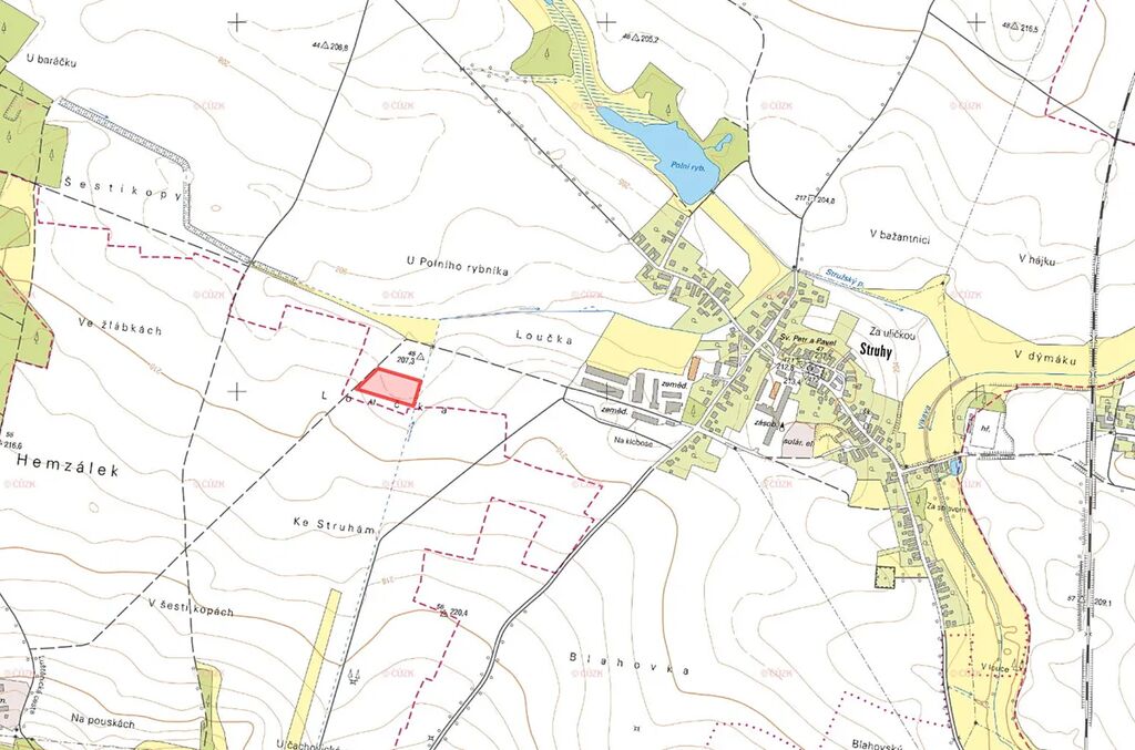 V katastrálním území Struhy, obec Čachovice, okres Mladá Boleslav, nabízíme k prodeji ornou půdu ve výlučném vlastnictví. Pozemek je zapsán na LV 444 a jedná se o parcelu č. 1000.