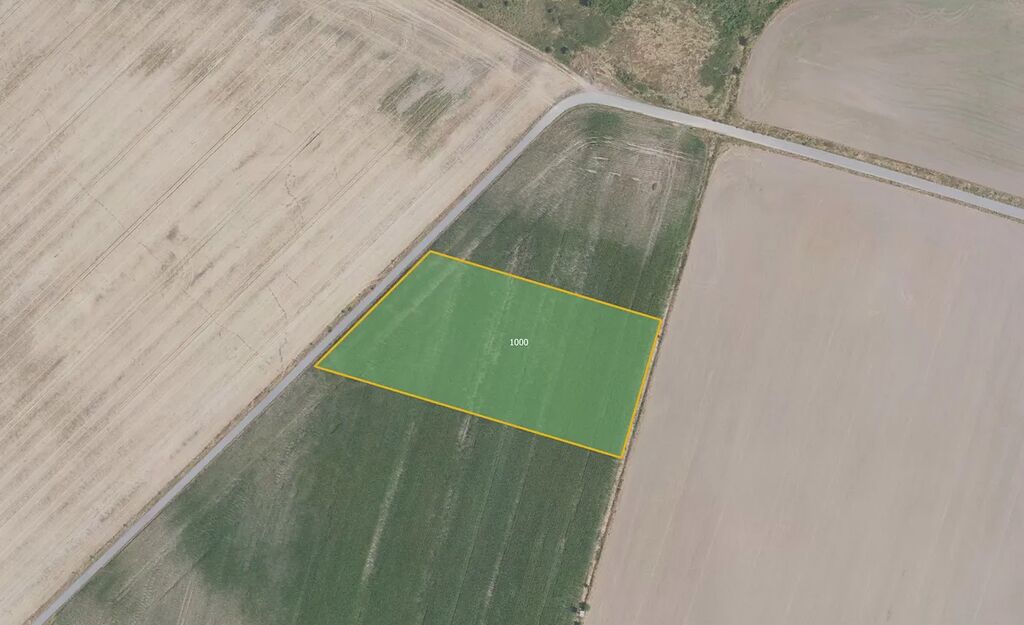 Celková výměra nabízeného pozemku činí 10 046 m². Jedná se o ornou půdu ve 100% vlastnictví. Pozemek se nachází u cesty a je tak snadno přístupný.