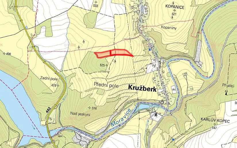 Konkrétně se jedná o pozemky parc. č. 62/1, 62/3, 62/4 a 578 zapsané na LV 296 v KÚ Kružberk. Parcely spolu těsně sousedí a tvoří tak jeden celek.