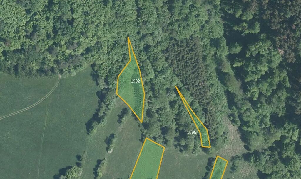 K prodeji je půda na pozemcích parc. č. 1896, 1902, 1906, 1908 a 1914/2 zapsaných na LV 696 v KÚ Lužná u Vsetína.