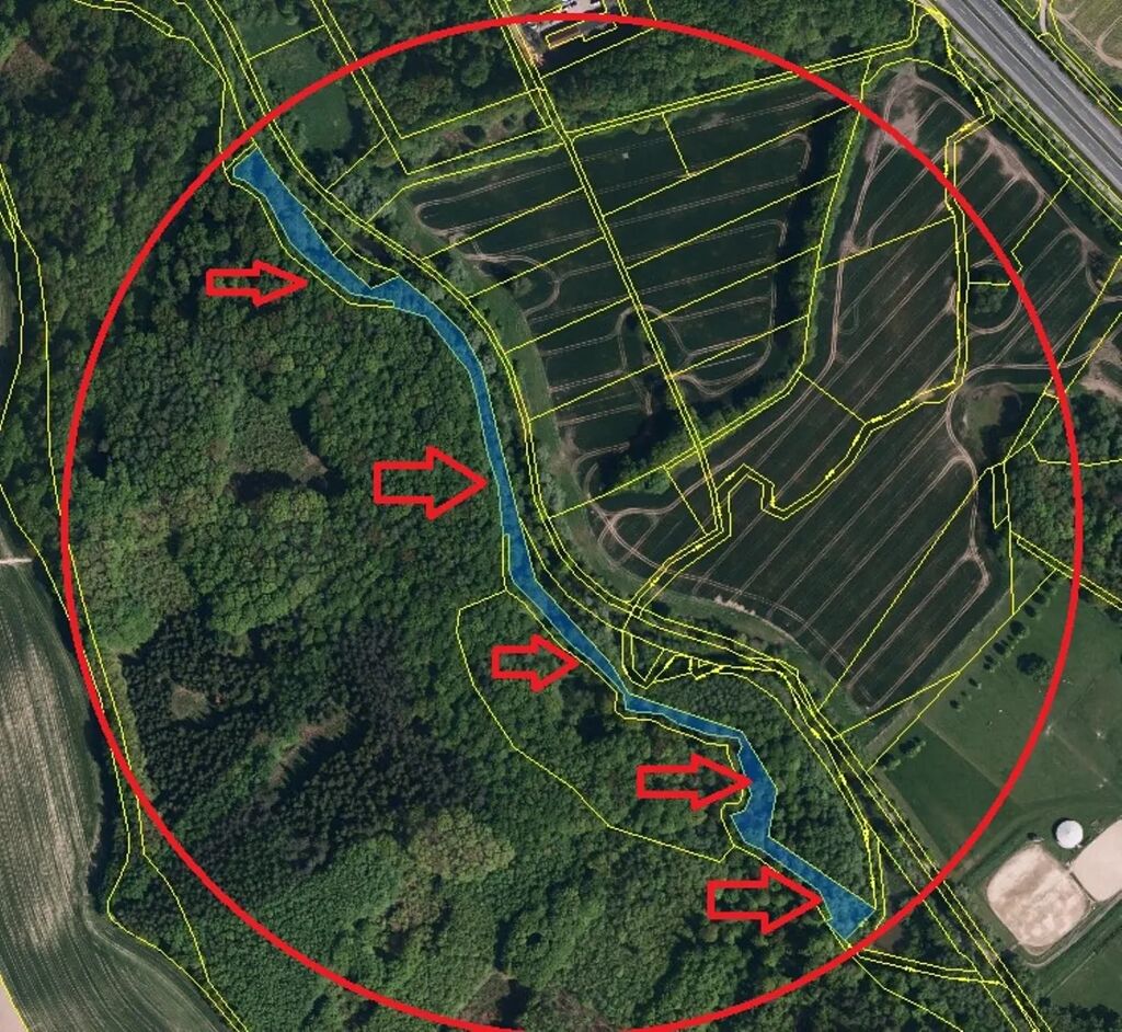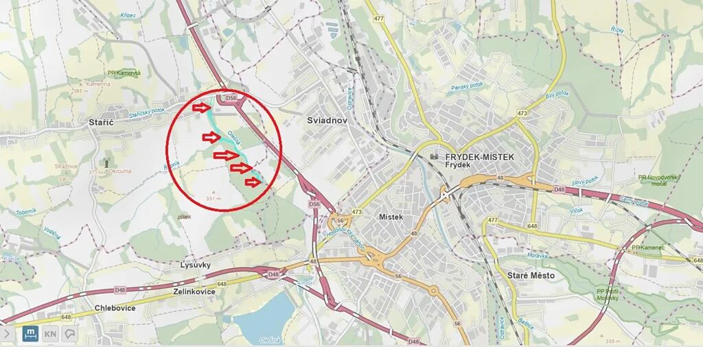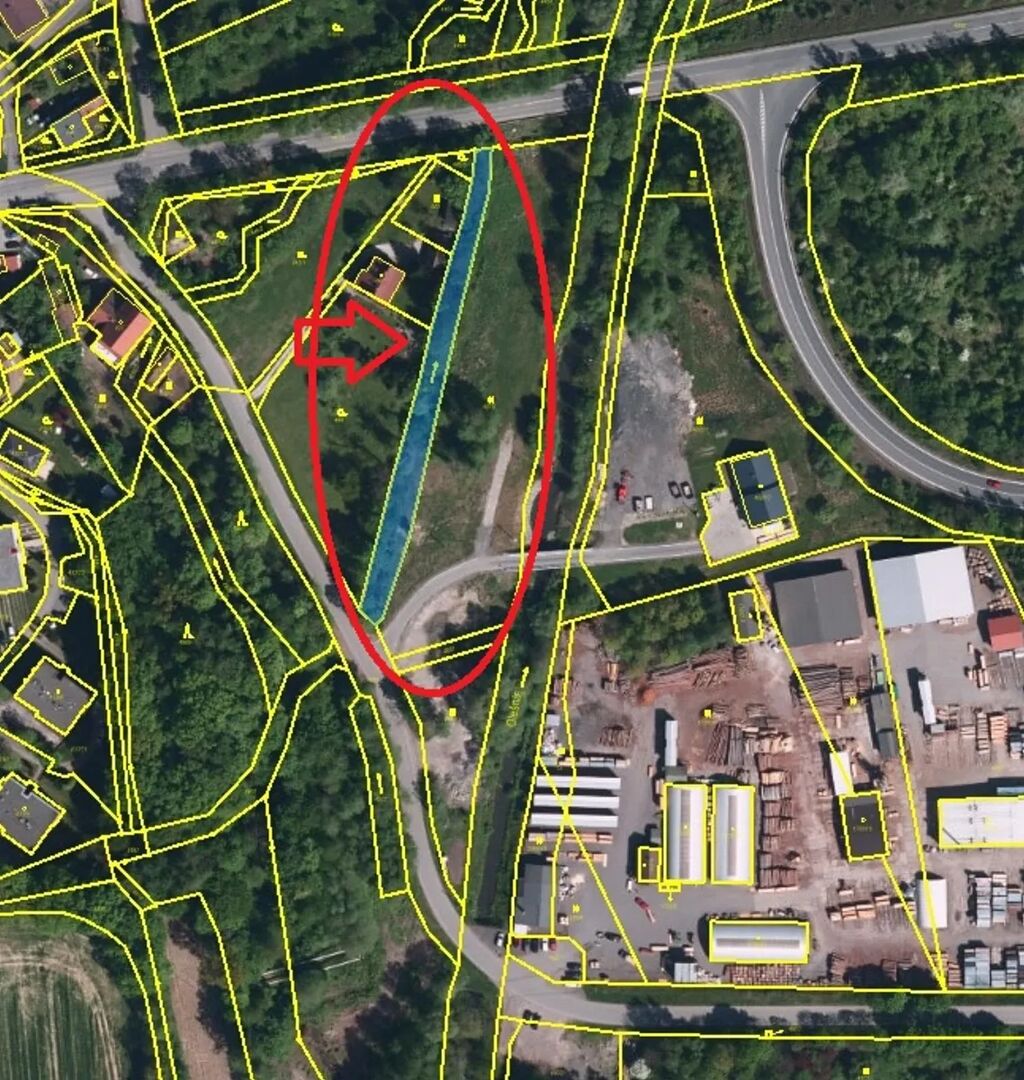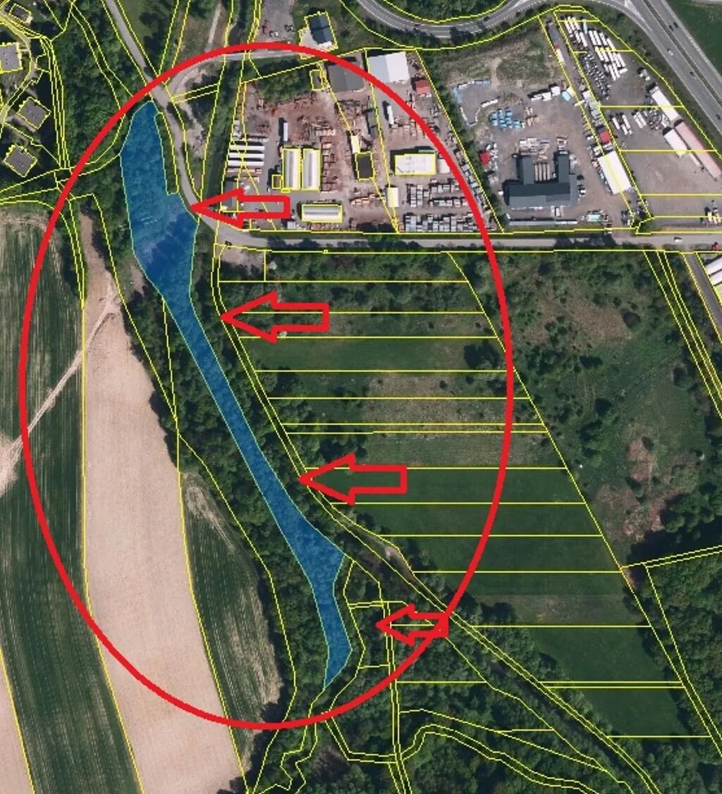 - p.č. 4877 vedená jako vodní plocha o celkové výměře 1 178 m2, vlastníme 1/2 tedy 589 m2,