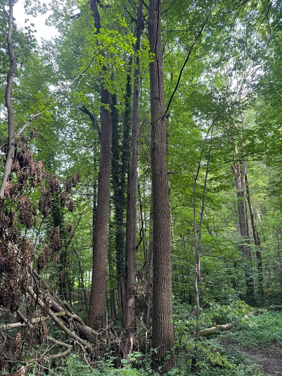 - p.č. 4987 vedená jako lesní pozemek o celkové výměře 4 140 m2, vlastníme 1/2 tedy 2070 m2 (stáří lesa 108 let - hlavní zastoupení je lípa, dub, topol),