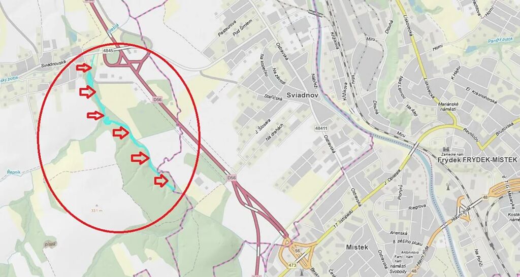 - p.č. 4990 vedená jako vodní plocha o celkové výměře 904 m2, vlastníme 1/2 tedy 452 m2,