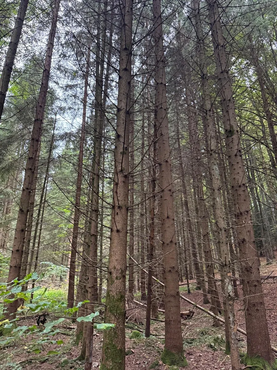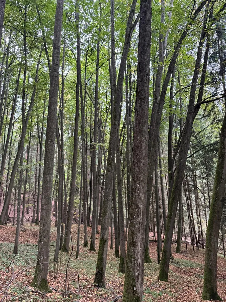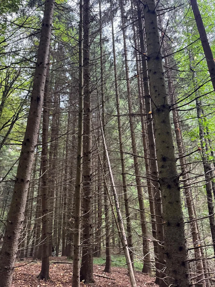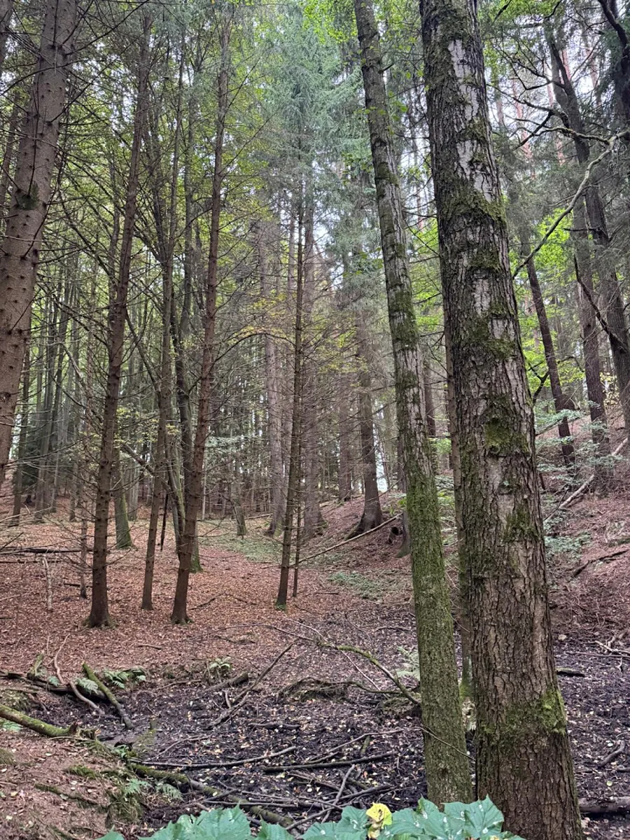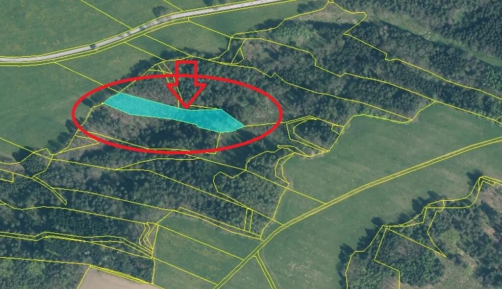 - p.č. 1262 vedená jako lesní pozemek o celkové výměře 5 524 m2 (stáří lesa 66 let- zastoupení dřevin lípa, dub, bříza, stáří lesa 45 let - zastoupení dřevin smrk, olše), k pozemku příjezd přes louku.