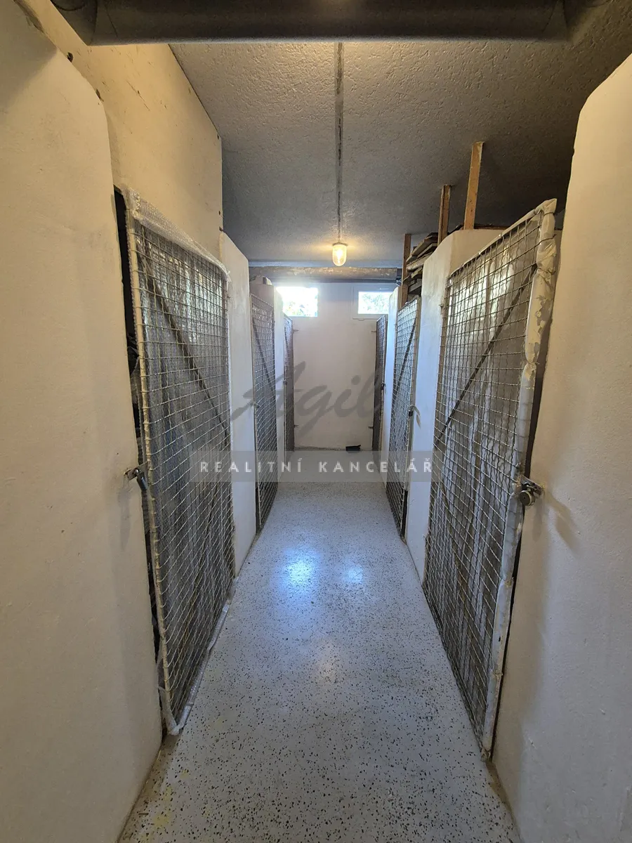 Kuchyně – kuchyňská linka, digestoř, lednice s mrazákem, mikrovlnná trouba, stůl 2x židle, spížka, lednice s mrazákem, 2x samostatně stojící policová skříňka, 2x nástěnná skříňka s policemi