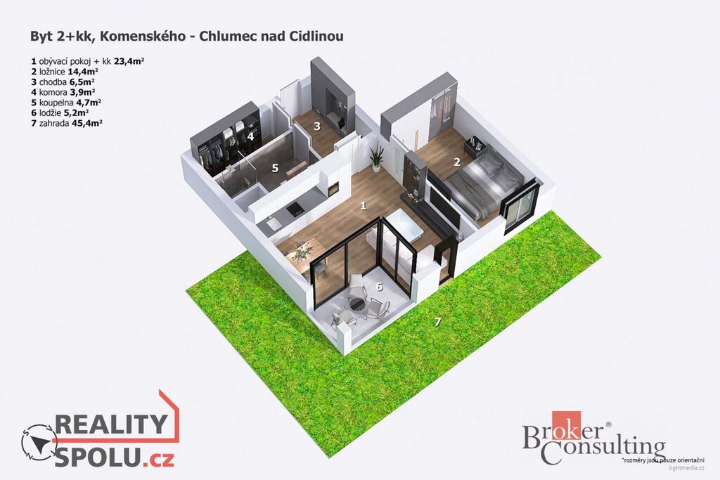 Nabízíme k pronájmu nový byt 2+kk o velikosti 53 m² v rezidenci v Chlumci nad Cidlinou, zkolaudované v roce 2025.