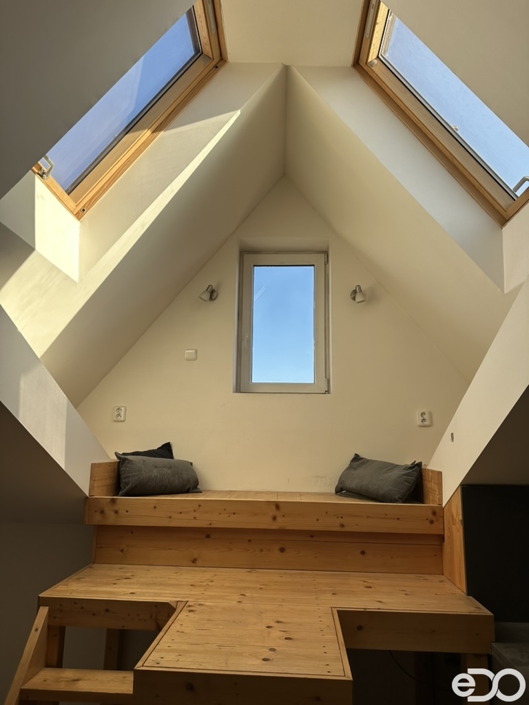 Byt je velmi útulně a zajímavě řešený, s dominantním arkýřovým oknem, které prostor příjemně prosvětluje a dodává mu jedinečnou atmosféru.