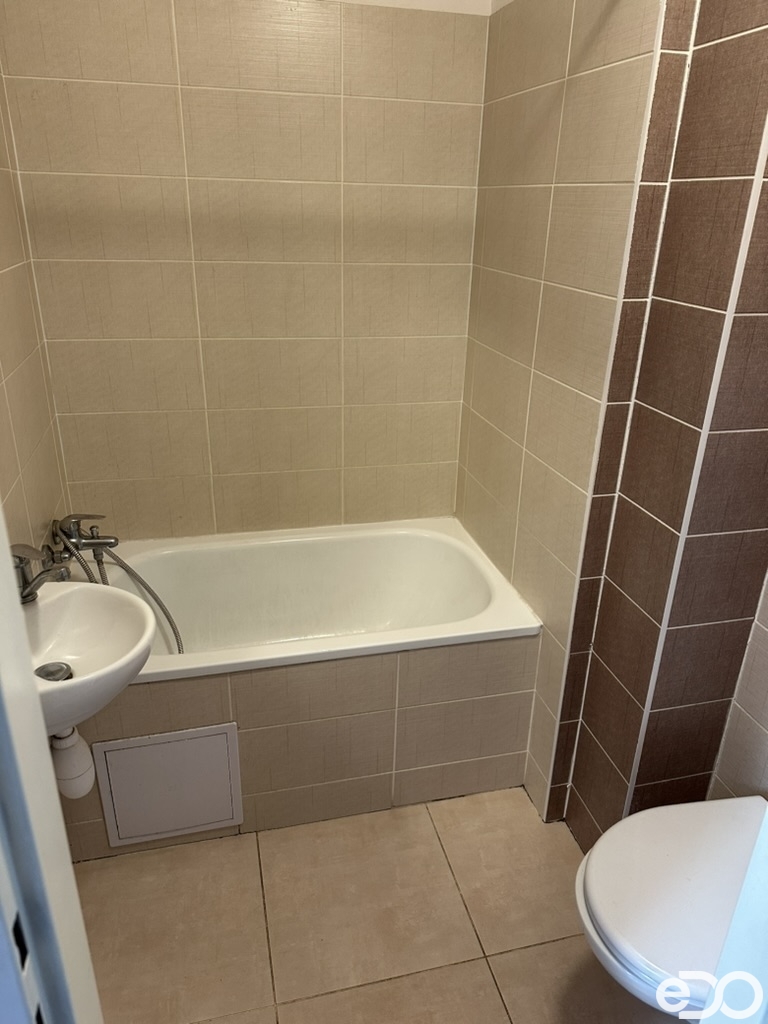 Součástí bytu je koupelna s vanou a toaletou, vstupní chodba a obývací část s kuchyňským koutem.