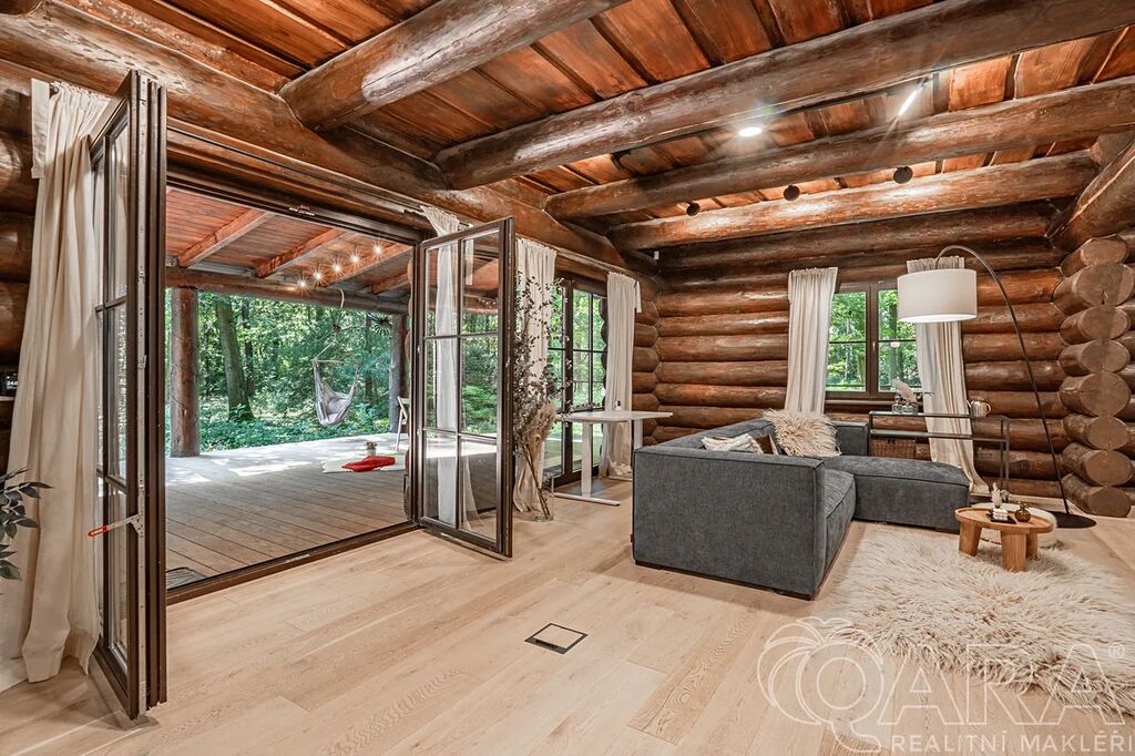 Moderní srub 4+kk, 156 m² s terasou 100 m² na lesním pozemku 4 830 m² – Kersko, 20 min od Prahy