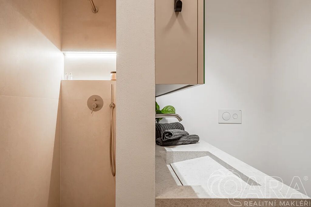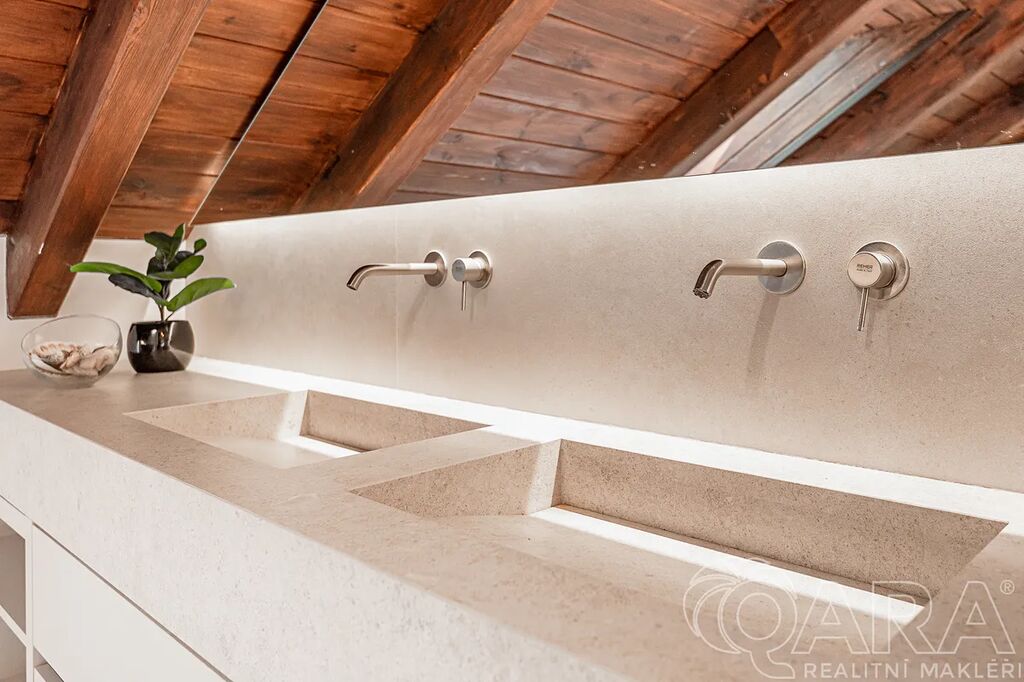 • Přímý vstup na terasu o velikosti 100 m² z evropského modřínu, s přípravou pro venkovní kuchyň