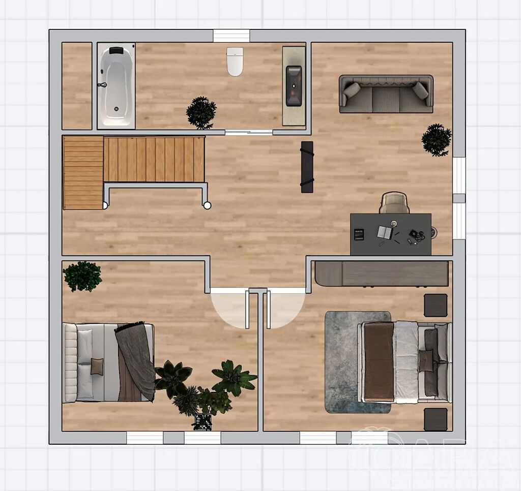 • Otevřené atrium (27 m²) využité jako pracovna/společenská místnost, s možností přestavby na třetí ložnici