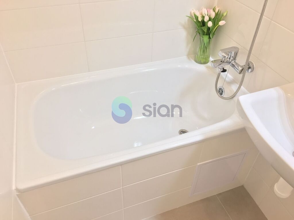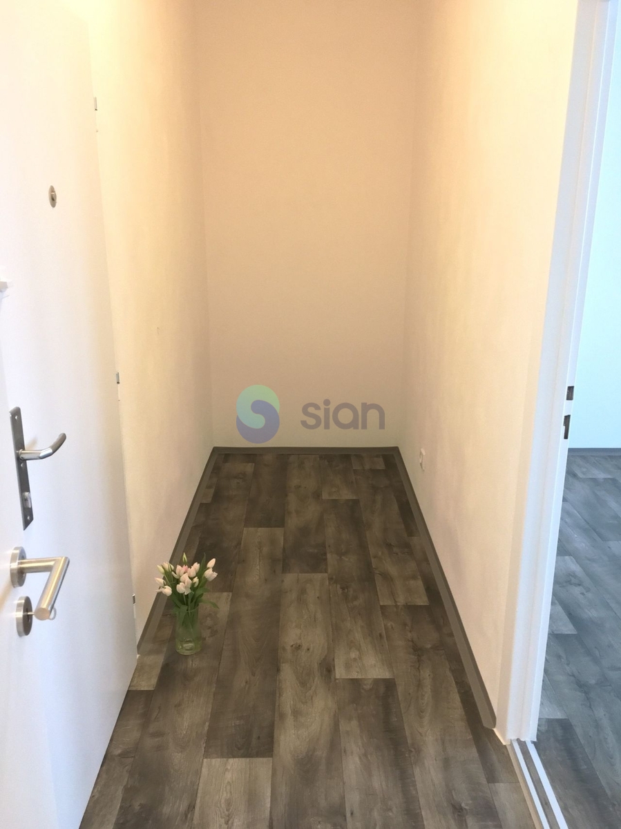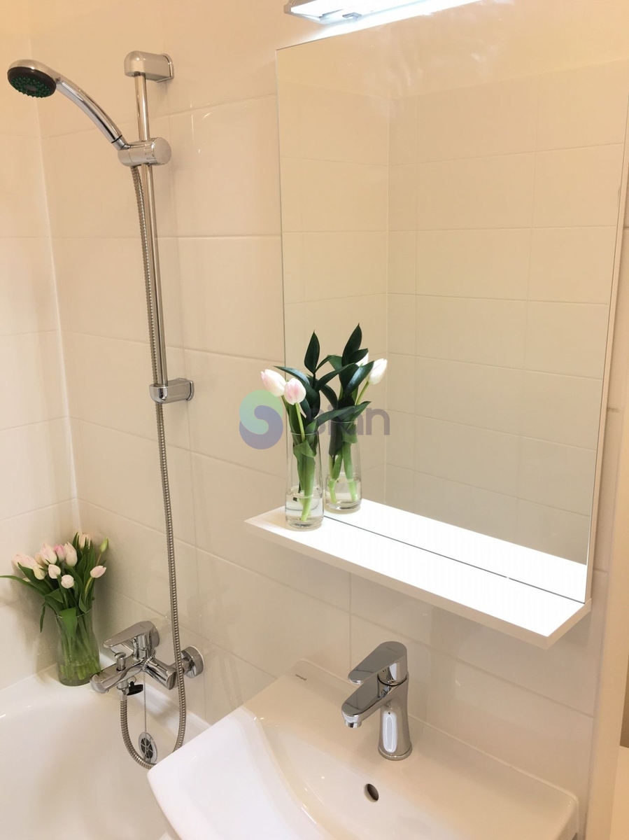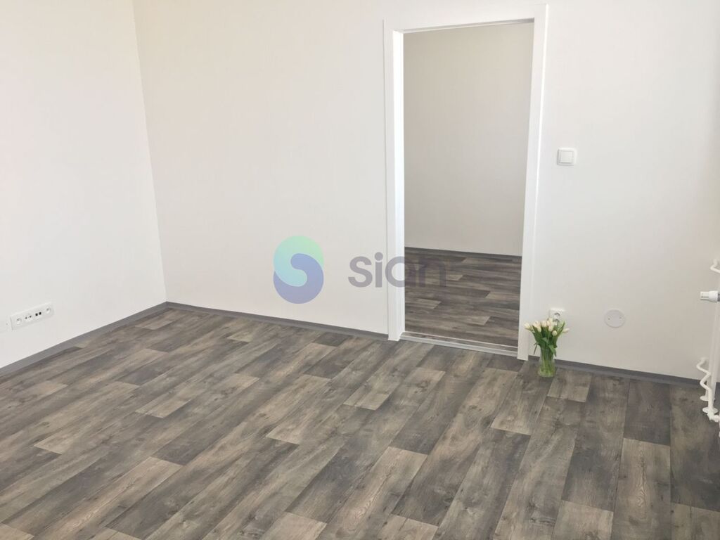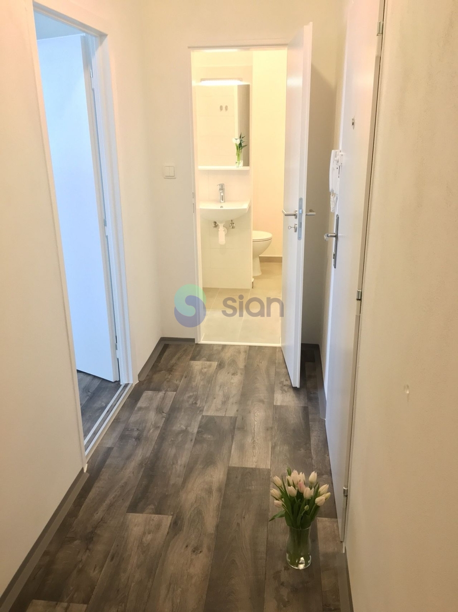 Byt je po rekonstrukci a má vyzděné jádro, podlahy, rozvody, omítky, interiérové dveře. Koupelna s vanou a umyvadlem s osvětlením, toaleta je součástí koupelny oddělená přepážkou. Kuchyňská linka je opatřena plynovým sporákem a elektrickou troubou s možností připojení pračky.
