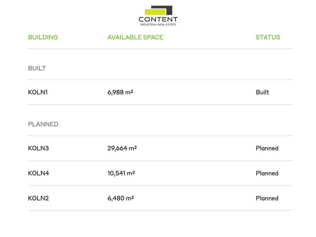 - samostatné industriální prostory až 6988 m² (budova KOLN1)
