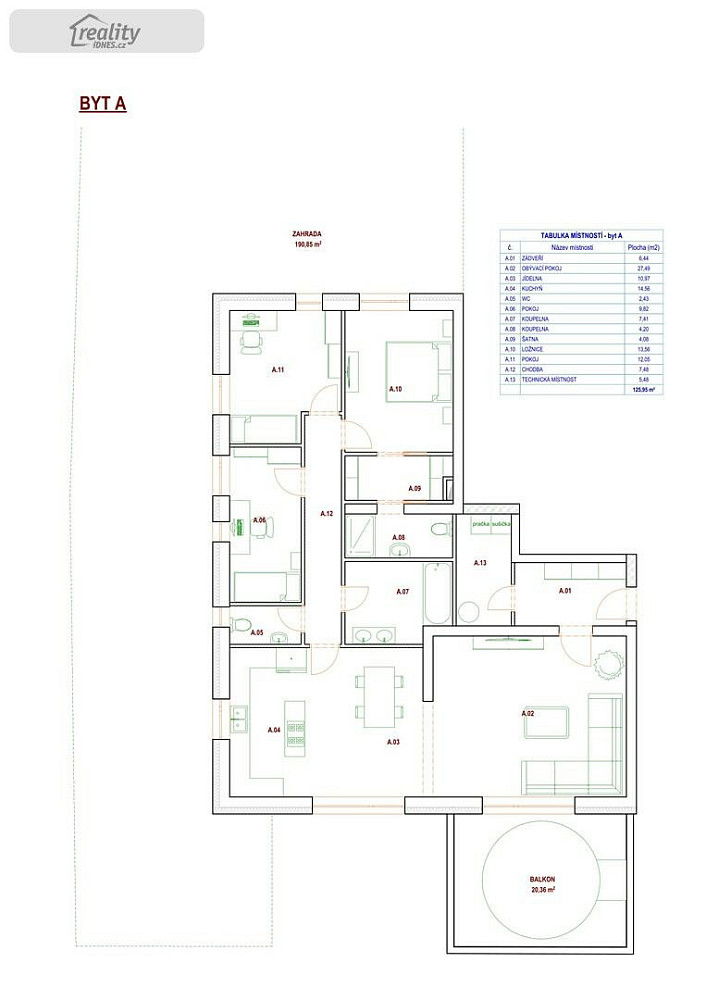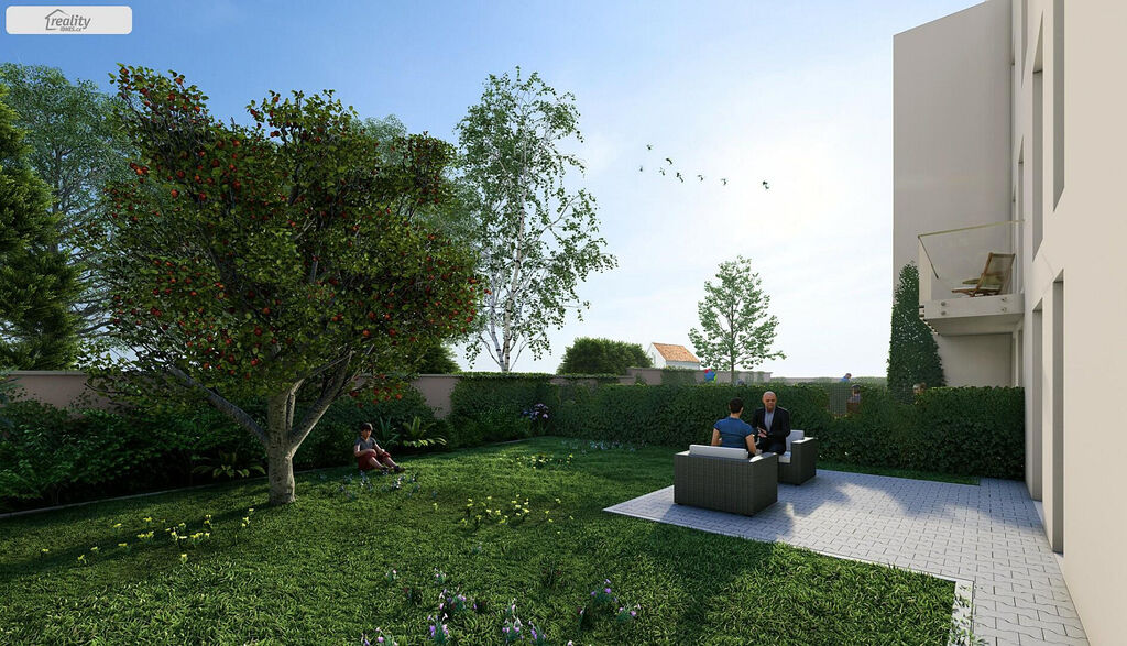 V zastoupení developera nabízíme nadstandardní byt v samostatné vile, v které se nachází pouze osm bytových jednotek. Tento byt je o dispozici 4+kk a užitné ploše 125 m² a jeho součástí je zahrada 125 m² s vlastním vjezdem a parkovacím stáním, další parkovací stání v pozemním podlaží lze dokoupit. Byt disponuje dvěma koupelnami, jednou samostatnou a druhou jako součást ložnice společně s WC. Další WC se nachází na chodbě bytu. Budoucí majitelé jistě ocení samostatnou technickou místnost a rovněž prostornou šatnu, která je propojena samostatným vchodem z ložnice.