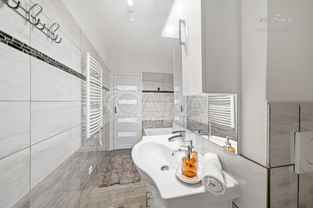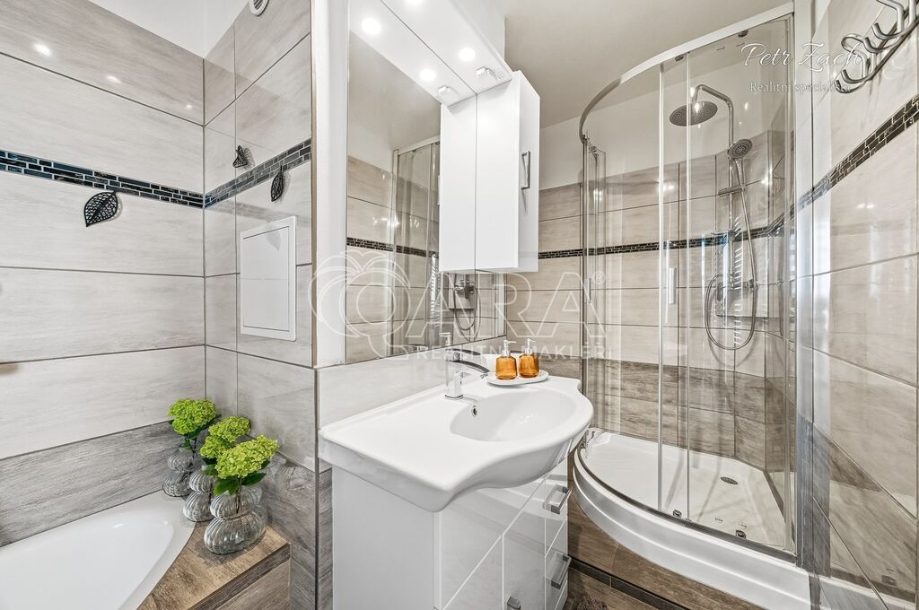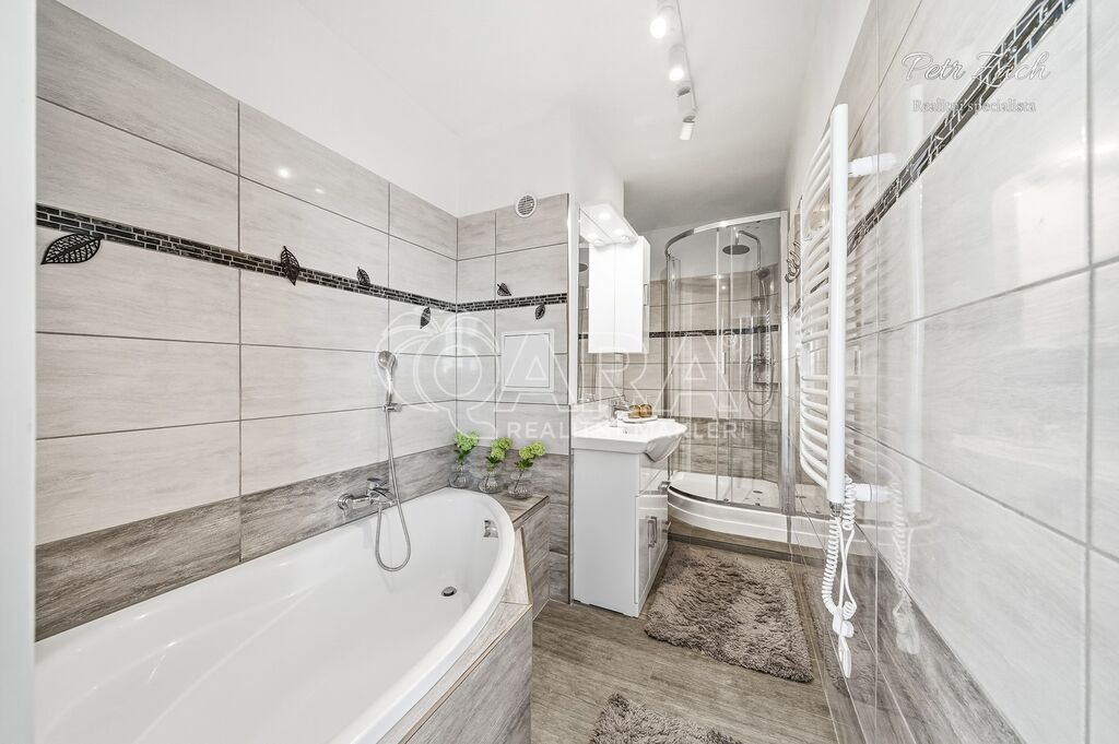 Kuchyň je vybavena moderní linkou a kvalitními spotřebiči – stačí jen přinést nádobí. V koupelně najdete jak vanu, tak sprchový kout, což ocení jak milovníci rychlé sprchy, tak relaxace po náročném dni.