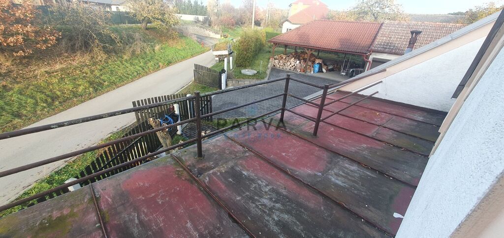 V patře pak další obývací pokoj, ložnici, malý pokojík a koupelnu.
