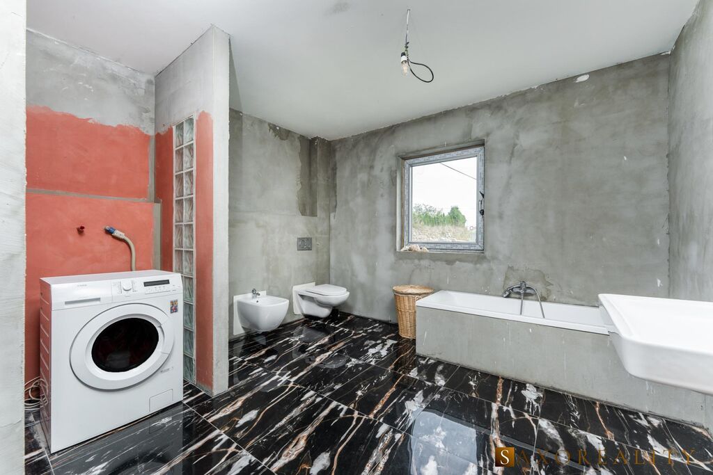 Exklusivně nabízíme k prodeji novostavbu v obci Buš nedaleko Slapské přehrady, která byla zkolaudovaná v roce 2024, poskytuje opravdu nádherný výhled do krajiny a má dispozici 6+kk s obytnou plochu 181m2. Pro lepší orientaci najdete ve fotogalerii orientační 3D plán včetně velikosti všech místností. Dům byl postaven jako dvougenerační, takže má každé patro samostatný vchod a vlastní 13m2 terasu, ale obě patra se dají samozřejmě propojit schodištěm. Mimo oplocení a fasády je potřeba dokončit některé interiérové věci, což poskytuje novému majiteli možnost dodělat si vše podle vlastního uvážení.