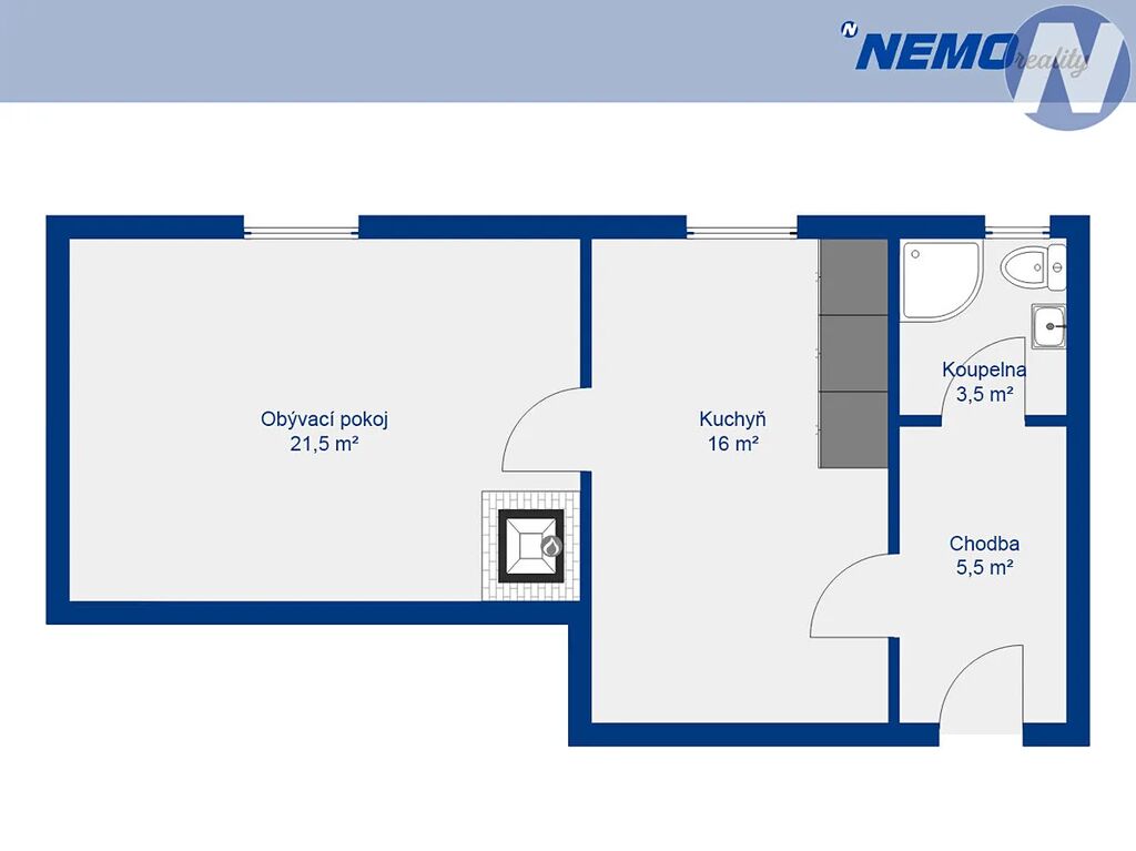 V bytě je zároveň příprava na akumulační kamna a v domě je zaveden plyn s možností jeho připojení do bytu, což do budoucna nabízí další varianty vytápění.